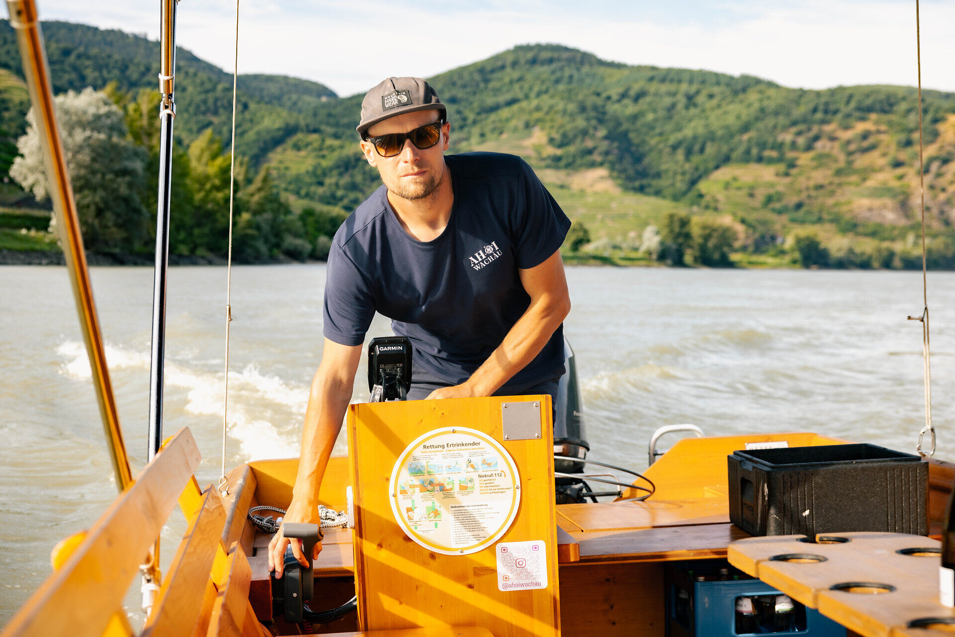 Michael Reichl von Ahoi Wachau nimmt uns mit auf die Zille. Mit dem Wein im Glas und neuen Perspektiven im Gepäck geht’s ab aufs Boot. Leinen los!