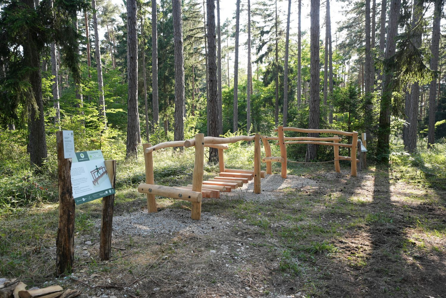 Ein Rundweg führt durch den Heilwald – vorbei an Stationen zur Förderung von Koordination, Bewegung und Balance sowie zur Wahrnehmung und Entschleunigung. Angeleitete Übungen laden dazu ein, aktiv zu werden oder achtsam innezuhalten. Ruheplätze schaffen Raum für Erholung, bewusste Naturwahrnehmung und tieferes Durchatmen. Besonders eindrucksvoll ist der Bestand an über 145 Jahre alten Mammutbäumen – sie prägen die Atmosphäre dieses außergewöhnlichen Ortes.
