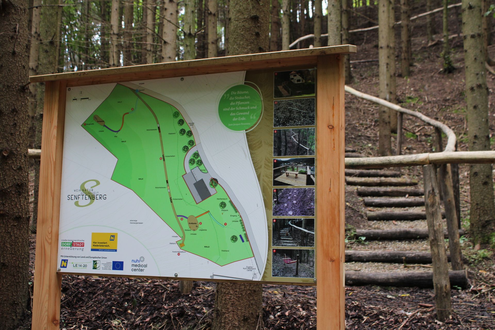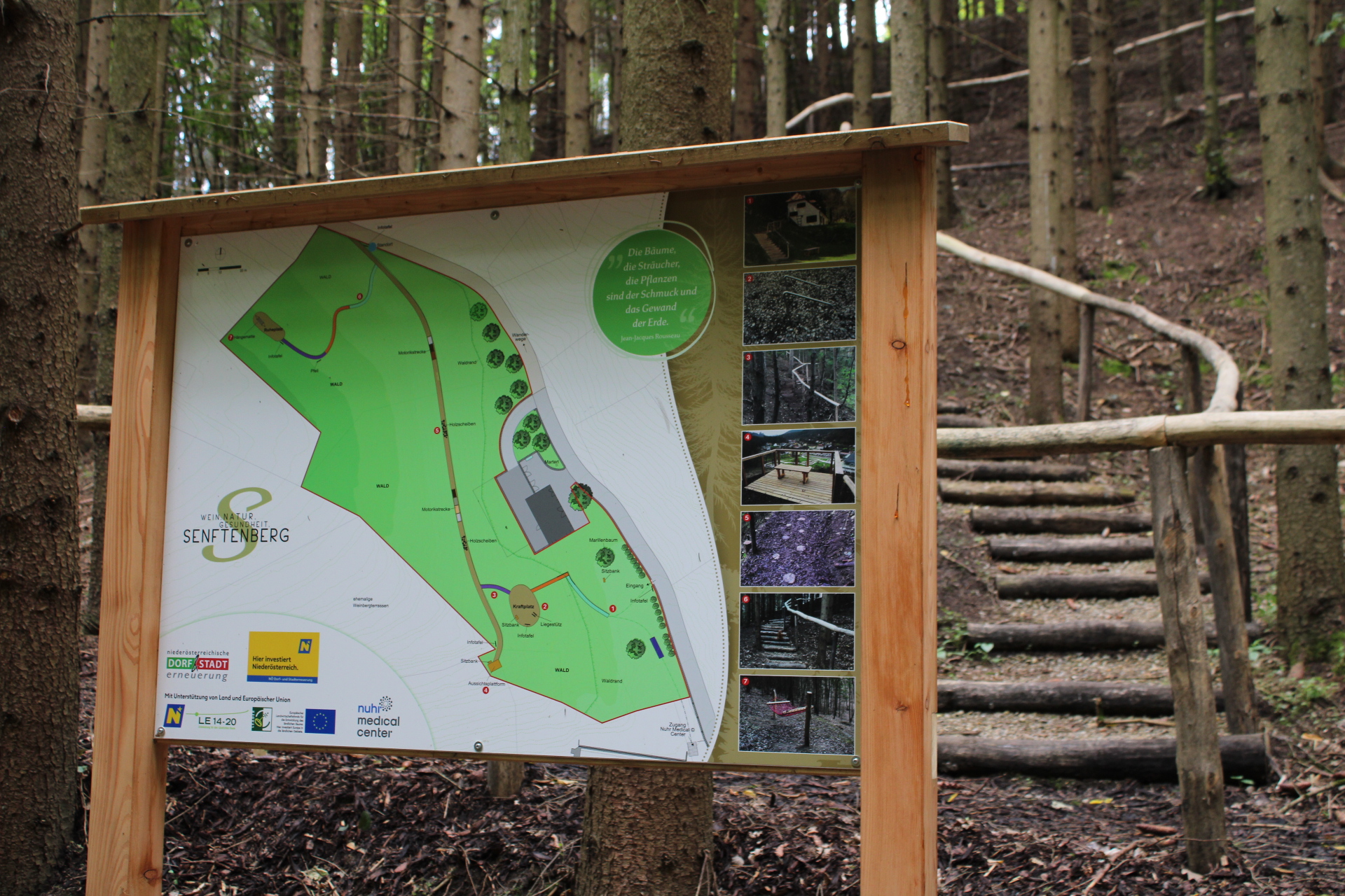 Die Marktgemeinde Senftenberg und das Nuhr Medical Center schafften gemeinsam in Senftenberg auf einer Fläche von rund 6.500 m² einen Heilwald. Dabei handelt es sich um einen öffentlich zugänglichen Park, der sowohl von den Patienten des Nuhr Medical Centers als auch von Einheimischen und Touristen zur Therapie und Erholung genutzt werden kann. Auf unterschiedlichen Therapiestationen gibt es die Möglichkeit, den Wald zu genießen und selbst die heilsame Wirkung zu entdecken und dabei Stress abzubauen. Mehrere Stationen für Geschicklichkeitsübungen, aber auch regenerative Verweilmöglichkeiten sorgen für eine ganzheitliche Unterstützung bei Therapien und tragen zur Gesundheitsprävention im Alltag bei.
