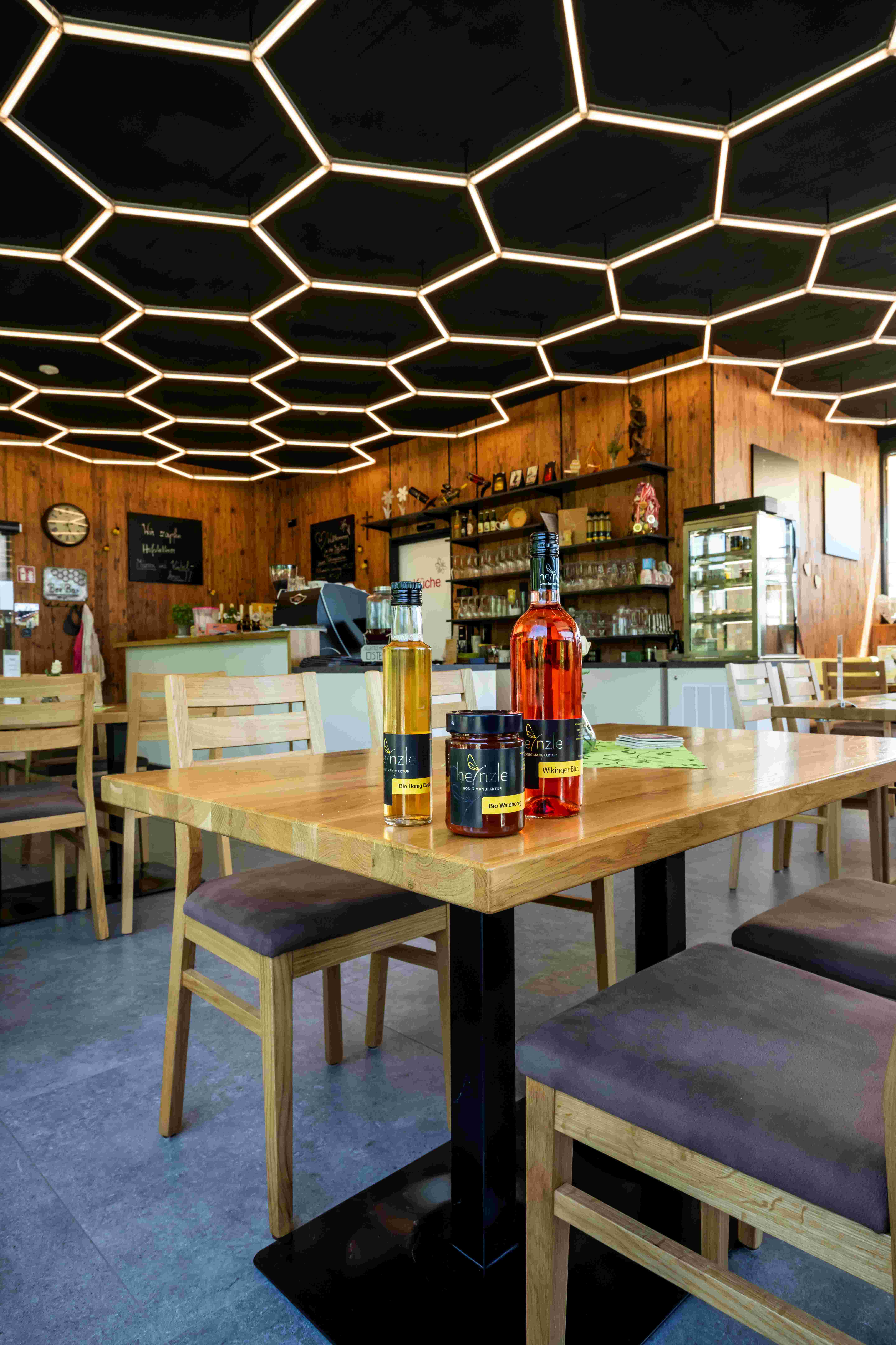 In der Bee-Bar kann man vom Sonnenaufgang bis zum Sonnenuntergang den wunderbaren Blick über die Donau bei einem guten Kaffee oder einem Glas Wein und einem kleinen Snack genießen. Mit dem Ausbau der Bee-Bar auf 2 Ebenen mit 80 Sitzplätzen entstand beim bereits bestehenden Bienenpark der Imkerei Heinzle neu die Heinzle’s Bienen-Erlebniswelt.