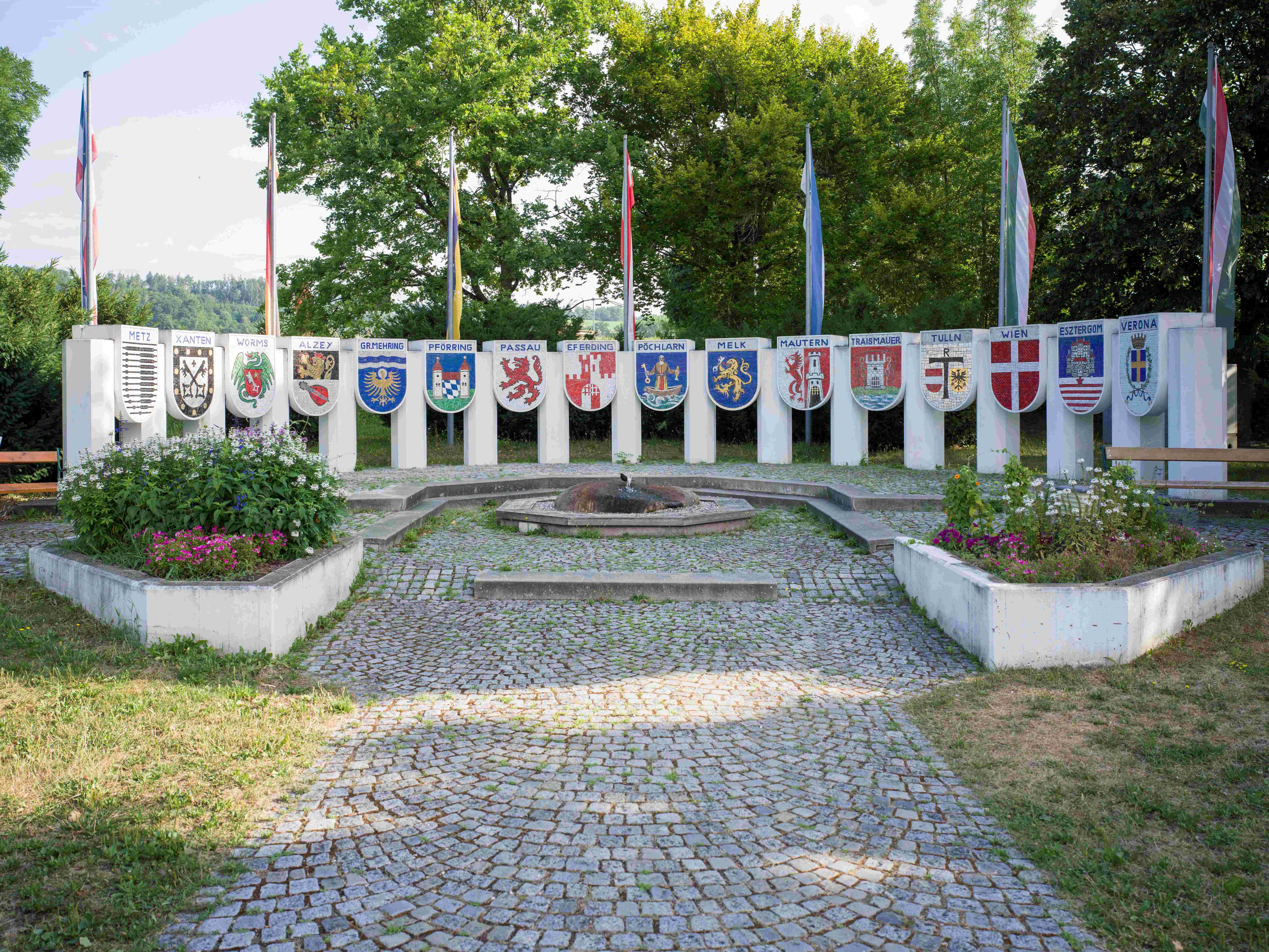 Das Nibelungendenkmal wurde 1987 errichtet. Dieses Monument zeigt sechzehn Mosaikwappen von Handlungsorten aus dem Nibelungenlied. Das Nibelungenlied erzählt auch von einem Markgraf Rüdiger von Bechelaren und seiner Gastfreundschaft. Um die Tradition der Nibelungen in Pöchlarn aufrecht zu erhalten, findet alle zwei Jahre ein Nibelungensymposium statt. Das Nibelungendenkmal wurde von Heinz Knapp künstlerisch gestaltet und stellt einen Beitrag zum europaweiten Friedensgedanken dar.