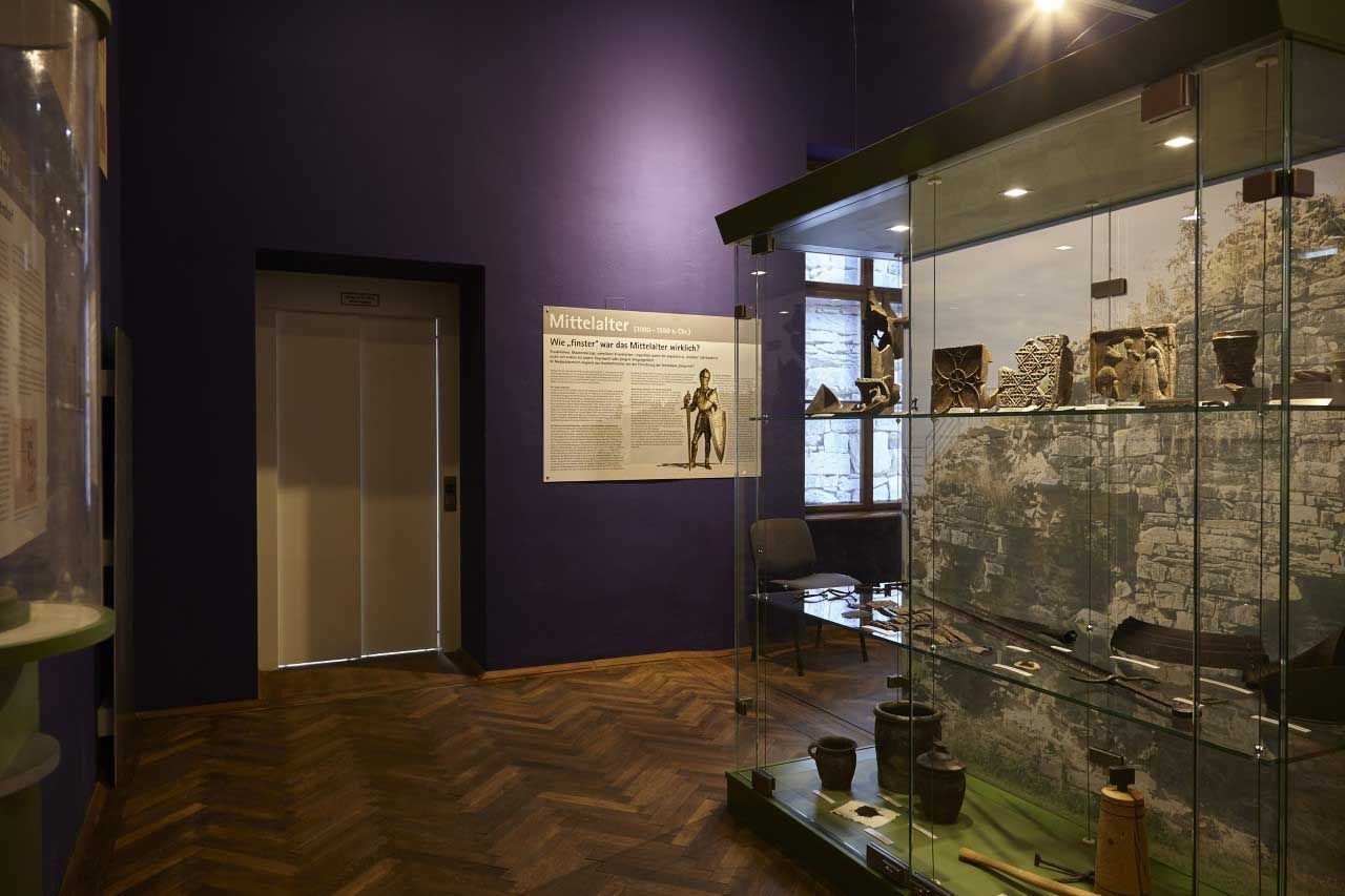 Bei den von 1987 bis 1998 durchgeführten archäologischen Ausgrabungen konnte eine überraschend frühe, kontinuierliche und komplexe Besiedlung und Bebauung ab dem 10. Jh. nachgewiesen werden. Damals wurde innerhalb einer Holzpalisade ein massiver Turm, eine frühe Form eines turmartigen Hauses, errichtet. Im 11. Jh. ersetzte man es durch einen kleineren steinernen Wohnbau mit mehreren Holzgebäuden. Nach der Mitte des 12. Jhs. wich dieser Komplex einer repräsentativeren, saalartigen Anlage mit nördlich anschließender Kapelle.