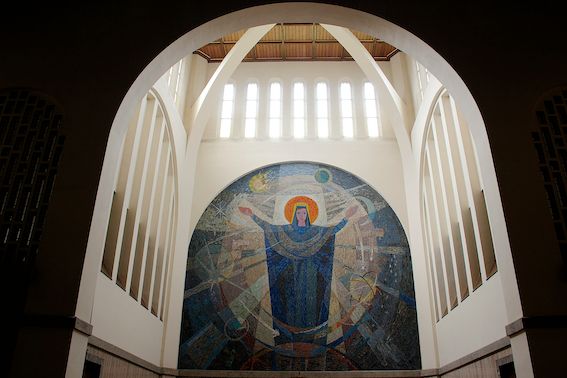 Die Pfarrkirche Krems-Lerchenfeld wurde 1958 geweiht. Die einschiffige Hallenkirche ist »Maria, Königin des Weltalls« geweiht. Dies zeigt auch das riesige Mosaik im Presbyterium. In der Kirche befinden sich eine Marienstatue aus Fatima und eine Herz-Jesu-Statue. Auf der Ostseite der Kirche ist zum Gedenken an die Gefallenen der Kriege ein sehr großes geschnitztes Holzkreuz mit Corpus.