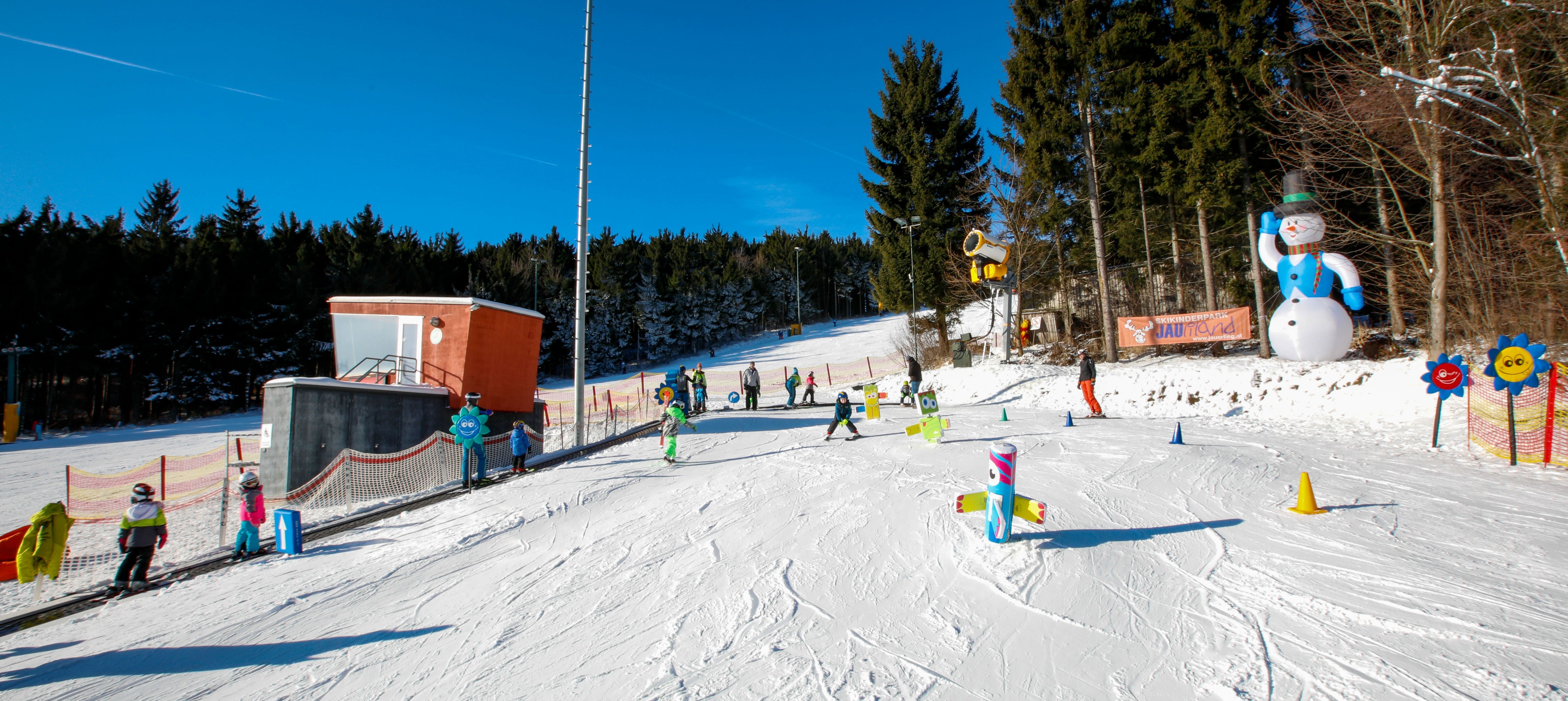Die 500m lange Piste bietet einen Schlepplift und einen Zauberteppich im Kinderskipark JAUliland, welches sich somit perfekt eignet sowohl für Anfänger als auch für fortgeschrittene Skifahrer.