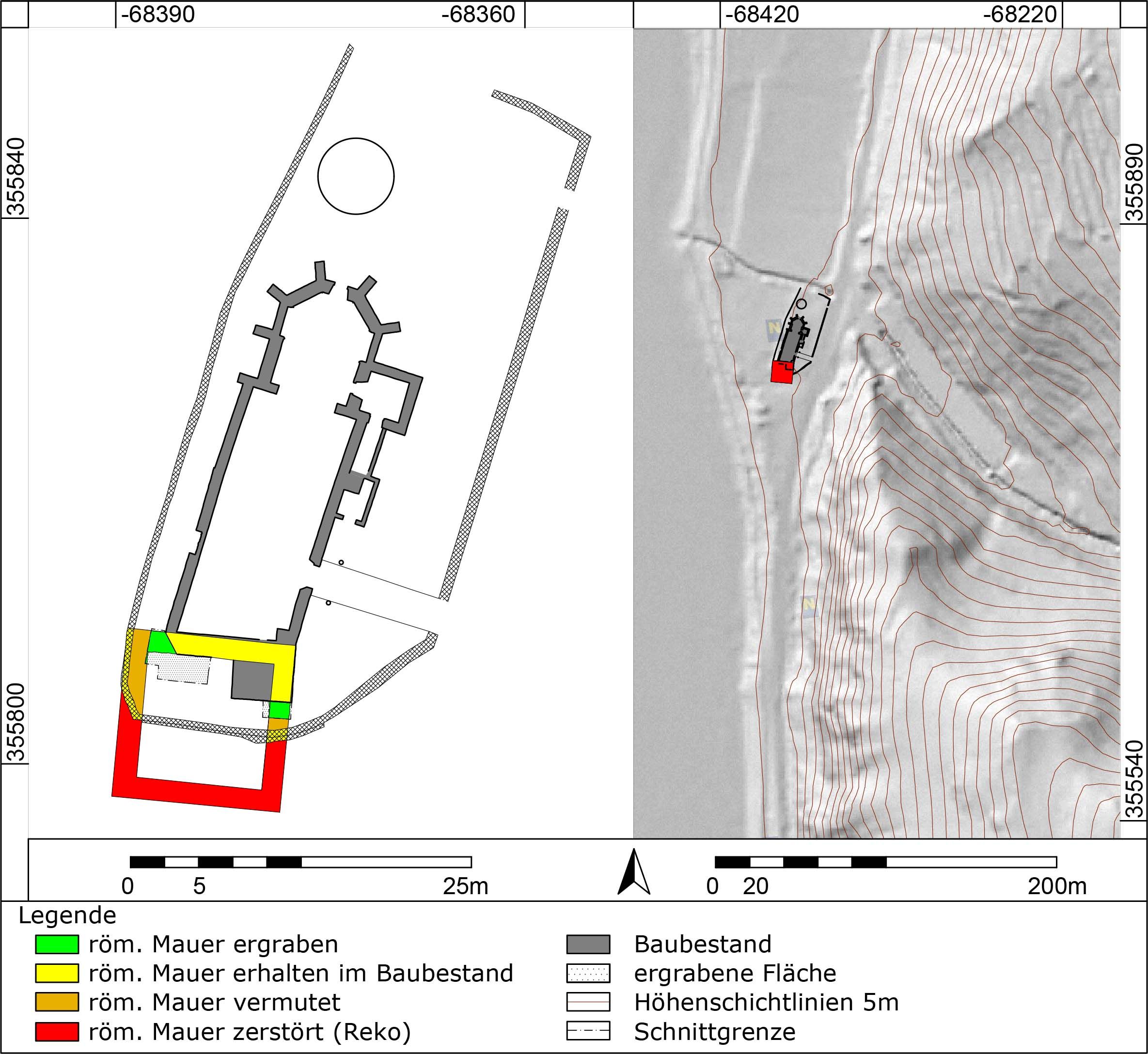 In der heutigen Kirche von St. Johann haben sich große Teile der römischen Bausubstanz erhalten, so stammen die gesamte Südmauer des in der Romanik (11. Jh.) errichteten Langhauses sowie die Nord- und Ostmauer des gotischen Turmes (14. Jh.) aus der Spätantike. Das Anbauen der Kirche im Hochmittelalter an die Nordfassade des „burgus“ würde auch die ungewöhnliche Ausrichtung des Kirchenschiffs nach Norden – und nicht wie gewöhnlich nach Osten – erklären.
