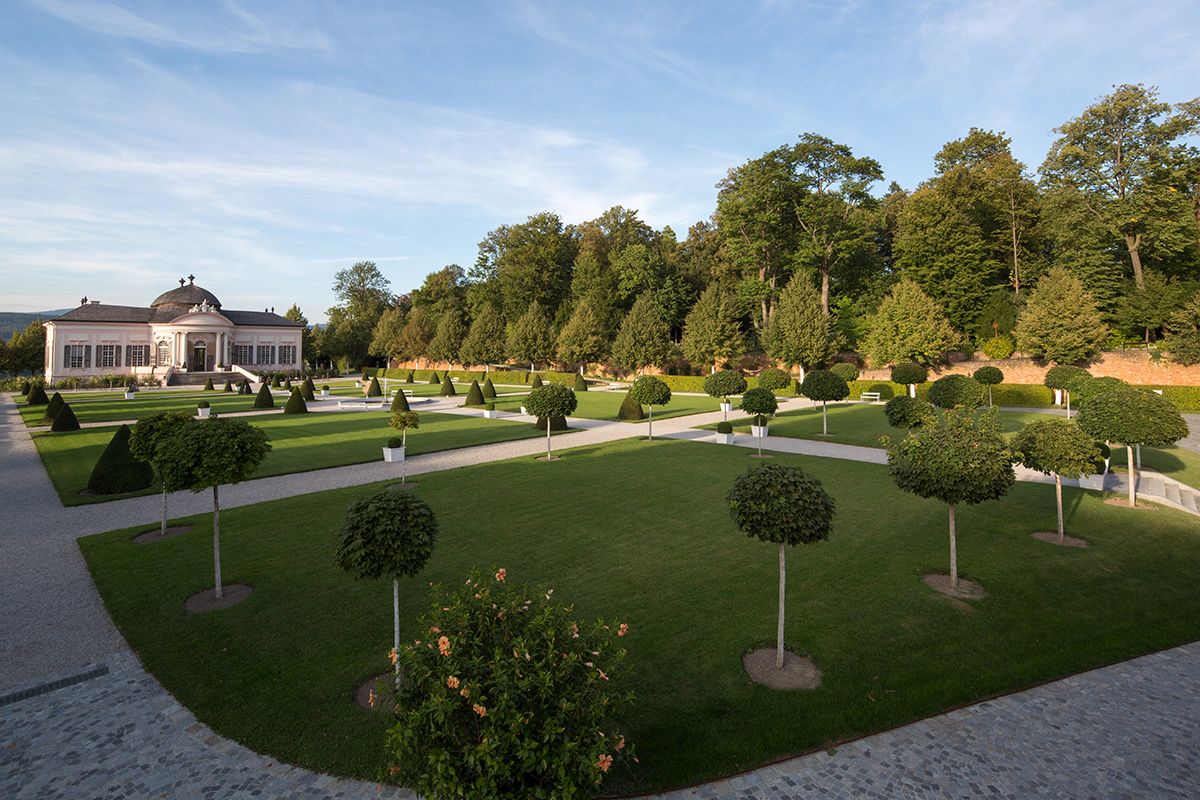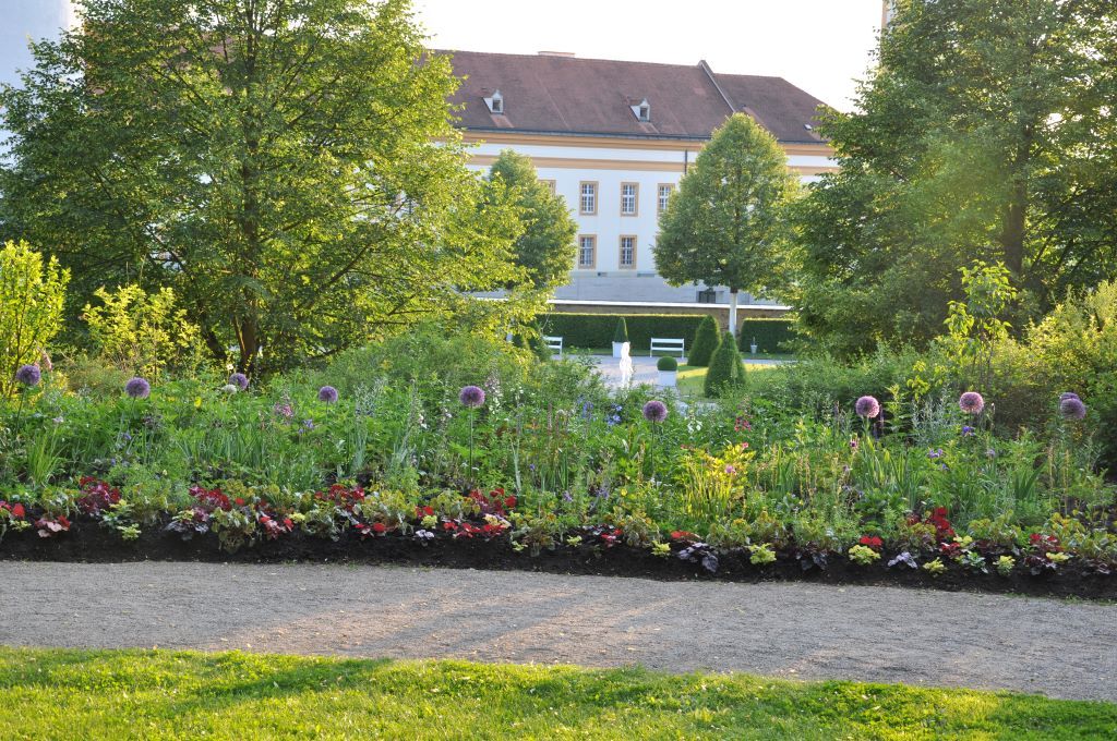 Er ist ein Gesamtkunstwerk. Wer ihn betrachten möchte, braucht – wie auch für das Stift selbst – Zeit. Denn der auf mehreren Etagen angelegte Stiftspark ist ein exquisites Stück Gartenbaukunst auf einer intakten barocken Bodenarchitektur. Blickfang und dominantes Element sind der Garten-pavillon und seine exotischen Fresken. Davor finden sich Rosen unterschiedlichster Sorten, die zur Blütezeit die barocke Verspieltheit des Pavillons noch unterstreichen. Obwohl ein Großteil der Bepflanzung aus dem 19. Jahrhundert stammt, sind doch im Laufe der letzten Jahre neue Impulse dazu gekommen. Moderne „Sprechende Steine“ etwa, ein „Benediktusweg“ zur Meditation, ein Trinkwasserbrunnen aus einem versteinerten Baum und eine Feuerstelle. Den Bogen zur Frühzeit des Ordens spannt das „Paradiesgärtlein“ nach dem Gartenbau-Buch „De Cultura Hortorum“ des Benediktinerabtes Walahfrid Strabo aus dem 9. Jahrhundert.