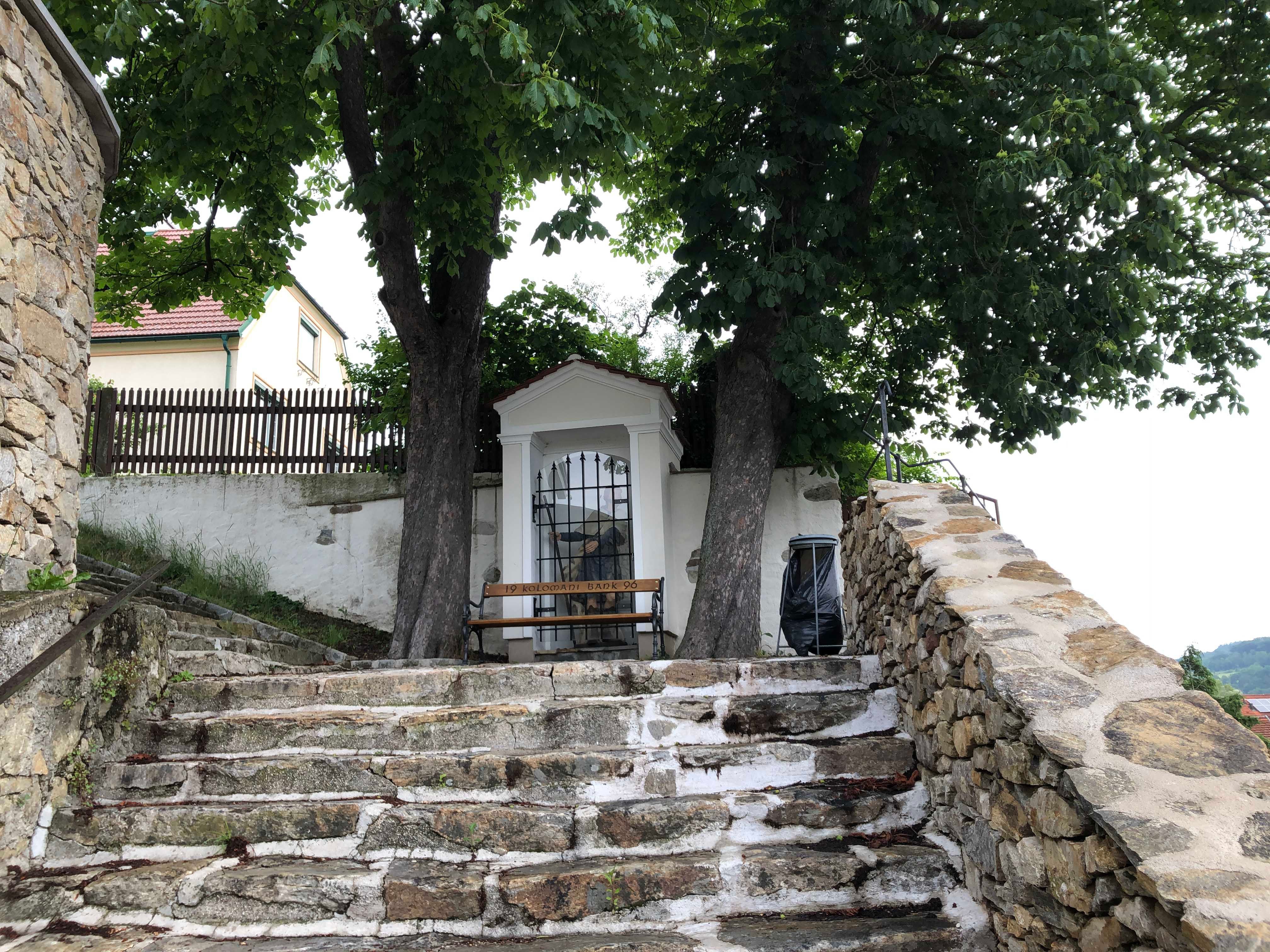 Die historische Kolomanistiege verbindet den malerischen Ortskern von Emmersdorf mit dem idyllischen Hochplateau der Pfarrkirche. Gönnen Sie sich eine Pause am einladenden Rastplatz in der Mitte der Stiege, wo Sie die beeindruckende Statue des heiligen Kolomans befindet. Von hier aus bietet sich ein herrlicher Ausblick über die Dächer von Emmersdorf – ein wahrhaft malerisches Erlebnis!