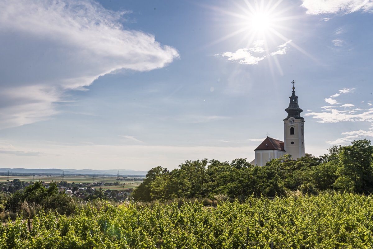 Sie ist weithin sichtbar, auf einer natürlichen Befestigung, dem sogenannten Kirchberg südöstlich des Marktplatzes gebaut. Der gotische Staffelbau wurde in der 2. Hälfte des 14. Jahrhunderts errichtet und im 18. Jahrhundert durchgreifend barockisiert.
