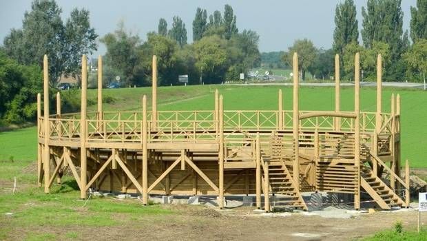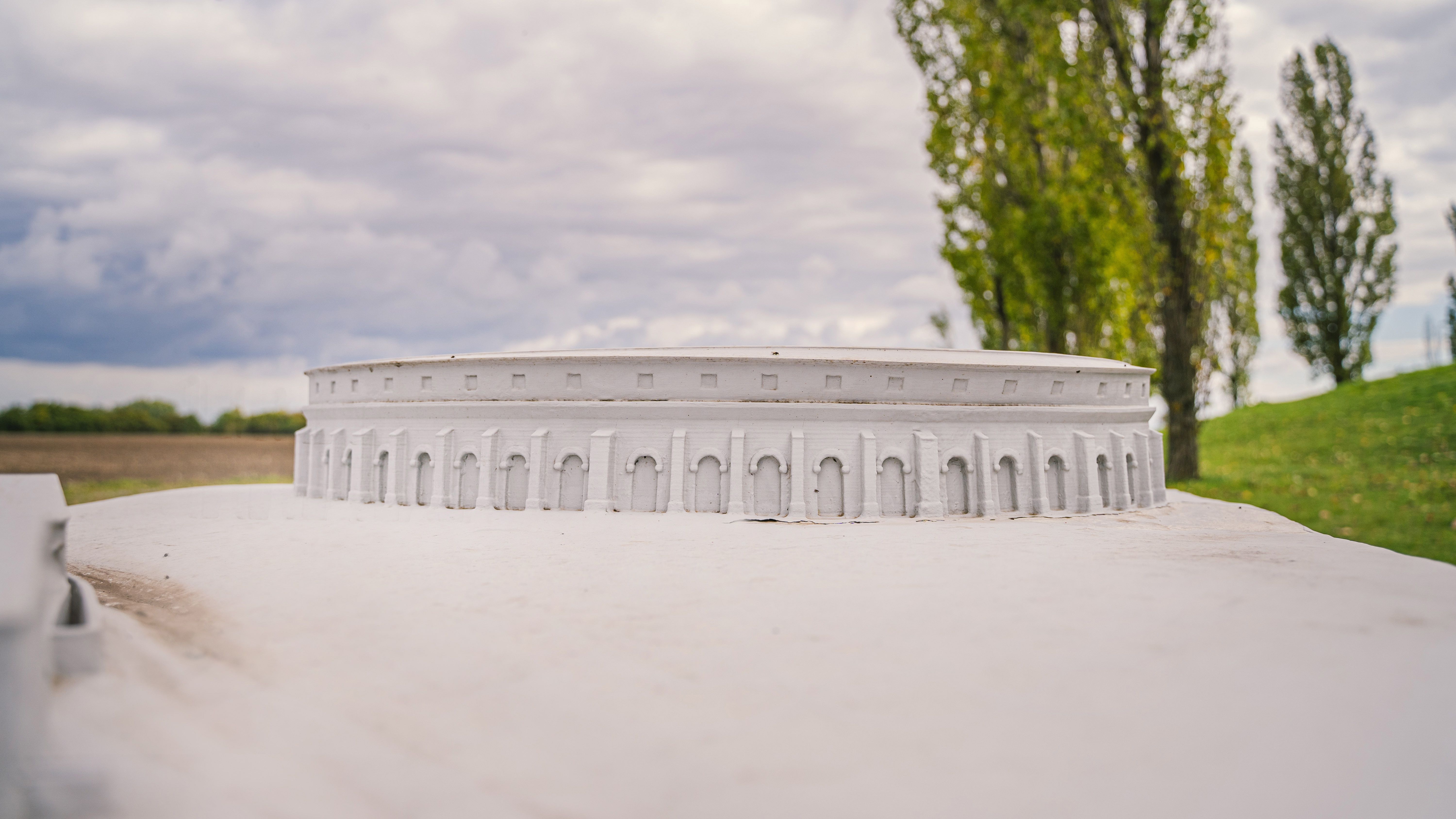 Das Amphitheater der Zivilstadt lag außerhalb des städtischen Siedlungsgebietes und bot 13.000 Personen Platz. Die Mauern der Arena sind bis heute erhalten und können untentgeltlich besichtigt werden. Gleich daneben ist die 2014 rekonstruierte hölzerne Trainingsarena der Gladiatorenschule zu sehen. Vom Parkplatz des Römischen Stadtviertels führt ein bequemer Fußweg zum Amphitheater.