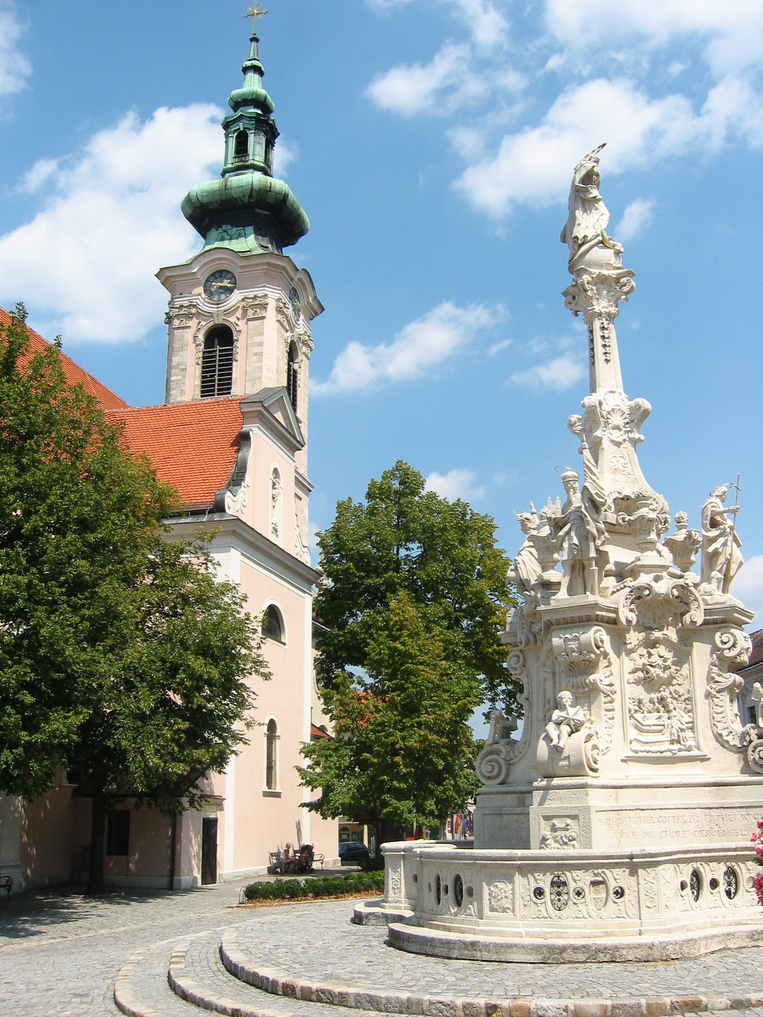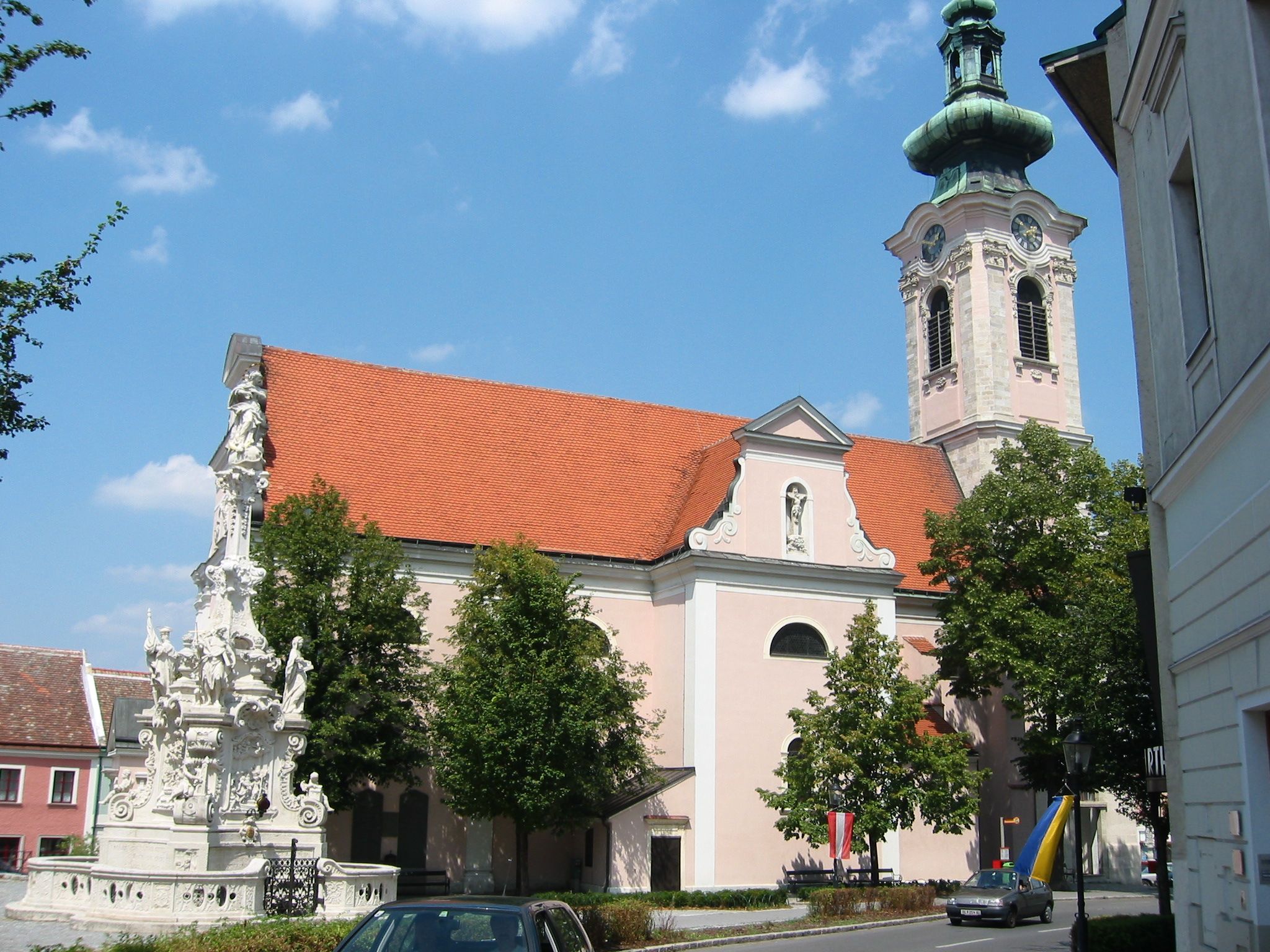 1236 als "Jakobskirche am Marktplatz in Hainburg" urkundlich erwähnt. Sie war zu Beginn eine klassische Händlerkirche. Sie diente Kaufleuten als Kultort und Schatzdepot. Spätestens seit 1650 ist diese Kirche die Stadtpfarrkirche (und nicht mehr die Martinskirche). Die Kirche ist den Hl. Aposteln Philippus und Jakobus geweiht. Wurde nach 1683 im neuen Stil der Barockzeit umgebaut.