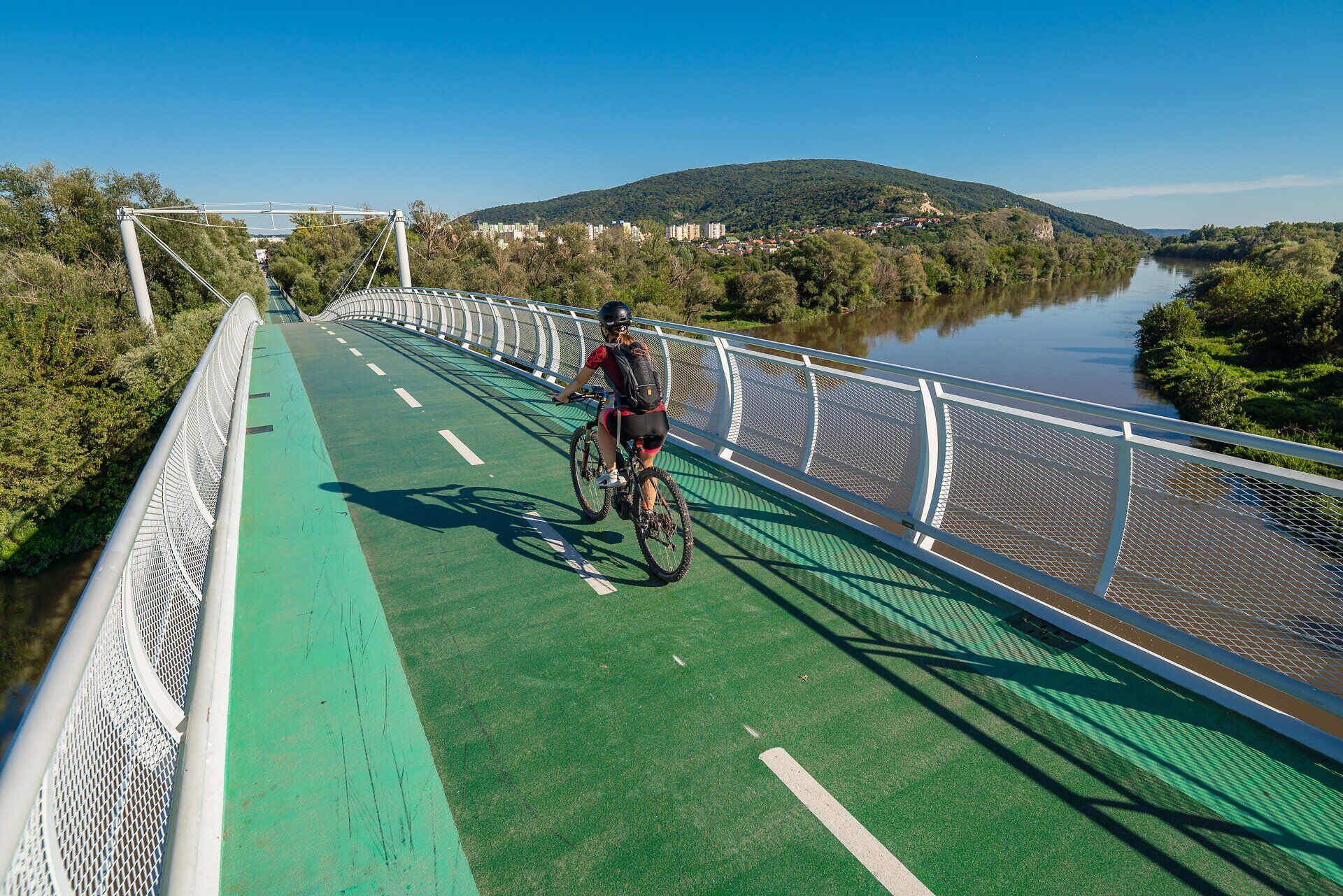 In Hainburg an der Donau bei der Schiffsanlegestelle startet die grenzüberschreitende Radtour „Carnuntum – Schloss Hof – Bratislava“. Die beschilderte Strecke ist in beide Richtungen befahrbar und verbindet Kultur und Natur. Entlang der Route liegen Highlights wie die mittelalterliche Stadt Hainburg, die Schlösser Niederweiden und Hof, die Burg Devin sowie die Altstadt und Burg Bratislava.