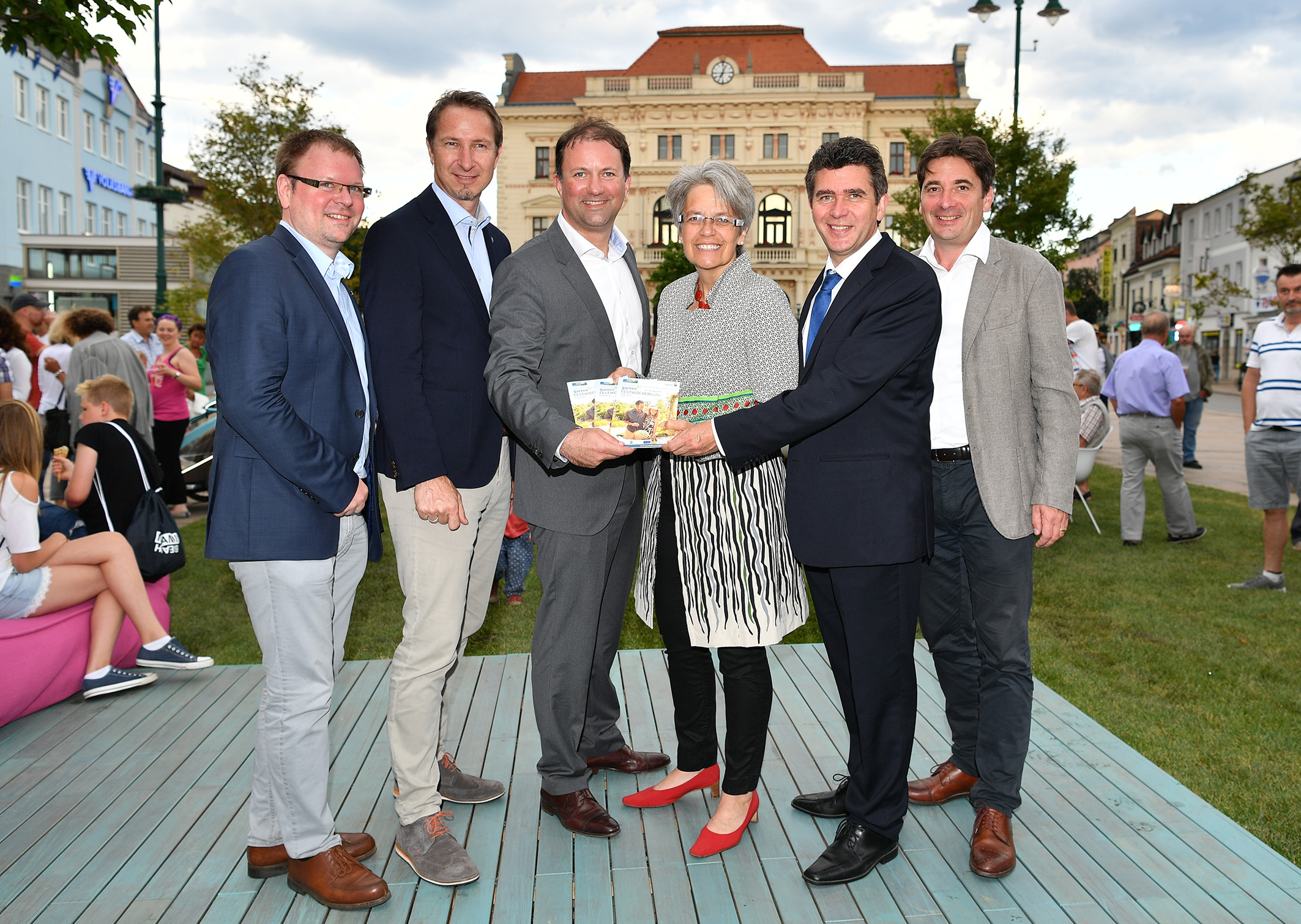 Der Abdruck des Fotos ist bei Angabe des Copyrights © NLK/Jürgen Burchert honorarfrei. Foto vlnr: Franz Aigner - Obmann Region Wagram, Mag. Stefan Bauer - Prokurist Niederösterreich Werbung GmbH, Mag. Bernhard Schröder - GF Donau Niederösterreich Tourismus GmbH, Tourismuslandesrätin Dr. Petra Bohuslav, Mag. Peter Eisenschenk - Bürgermeister Tulln, Franz Gruber, MSC - Geschäftsführer DIE GARTEN TULLN.