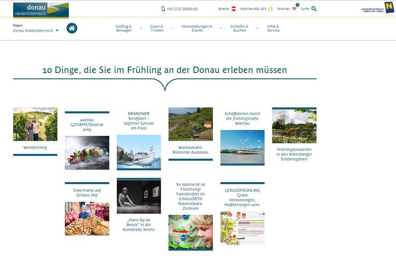 Die Donau Niederösterreich Tourismus GmbH hat die Website www.donau.com neu gestaltet. Die Seite, sowie die regionalen Seiten www.wachau.at www.tullnerdonauraum.com und www.carnuntum-marchfeld.com zeigen sich nun in neuem Design.