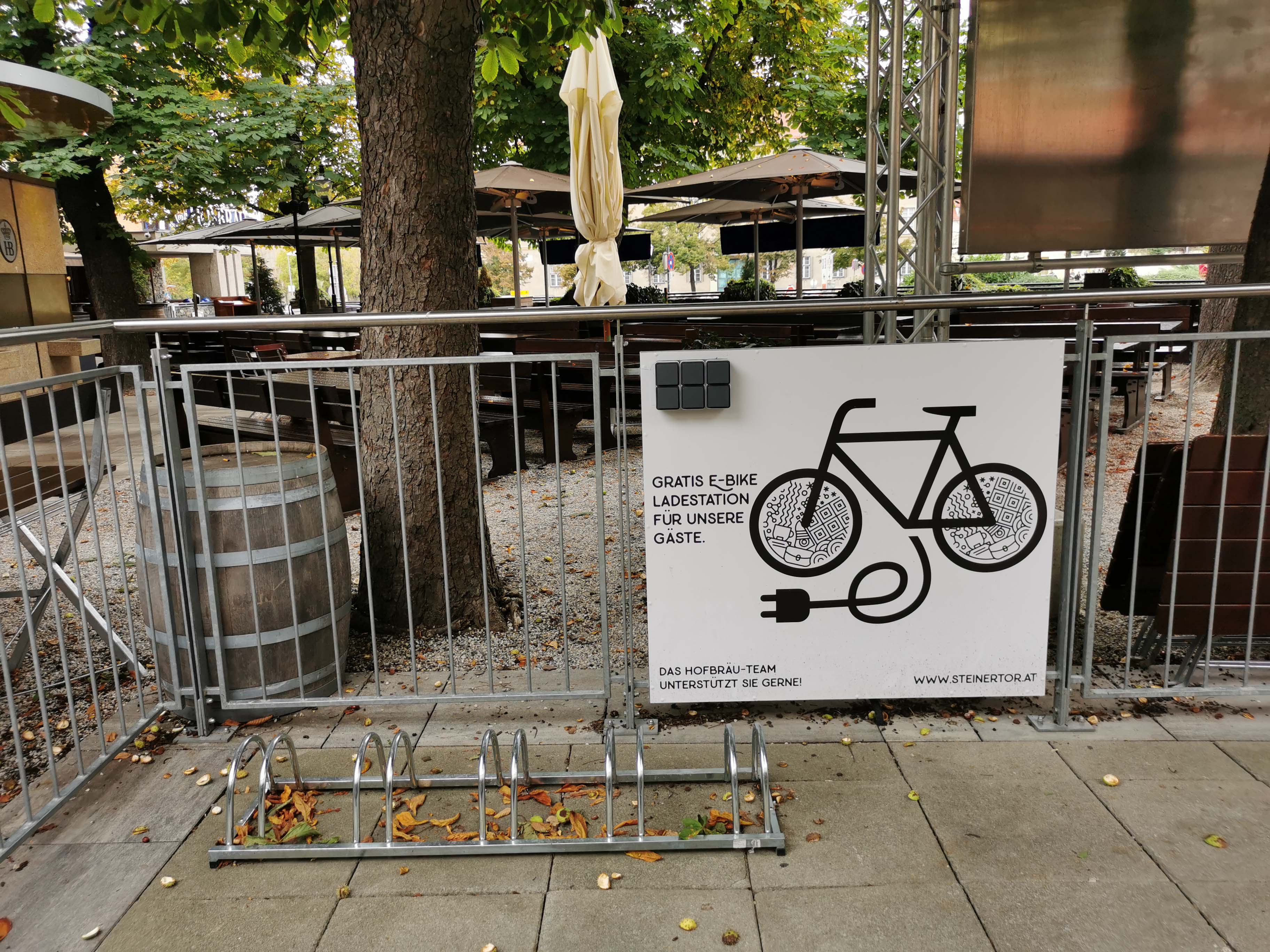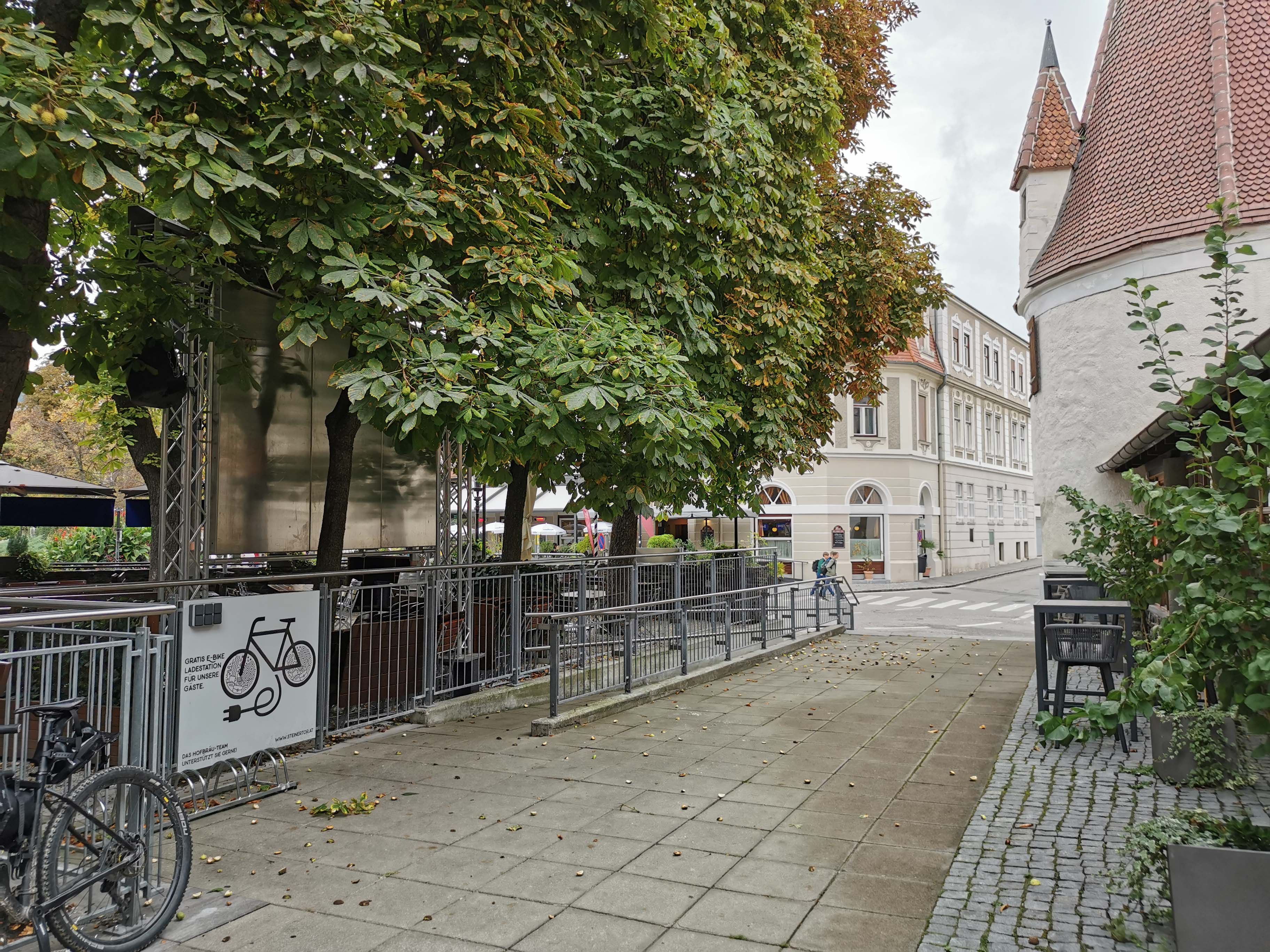 At Steiner Tor - the entrance to Krems' pedestrian zone - there are 6 e-charging stations and 15 bicycle parking spaces at the Steiner Tor shopping center, next to the Hofbräuhaus brewery.