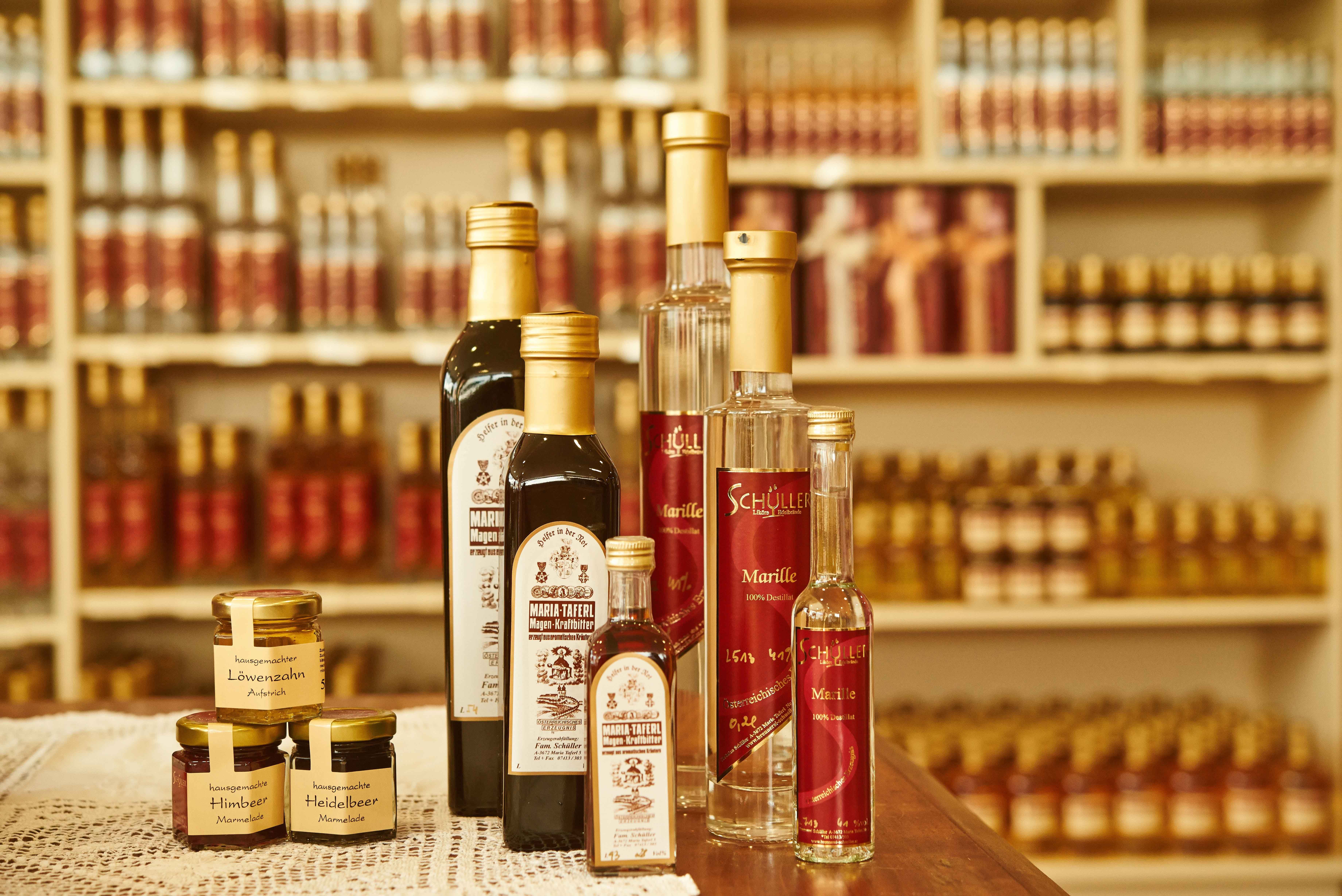 Ursprünglich als Kaufhaus und Greisslerei gegründet, hat sich das Haus in den letzten 30 Jahren zu einem Ort des Wohlfühlens, der Gemütlichkeit und des Genusses entwickelt. Die Entdeckung der unveränderten Rezeptur des Original Maria Taferl Magenbitter in der Familienchronik von 1750 führte zur Produktion von Likören und Edelbränden.