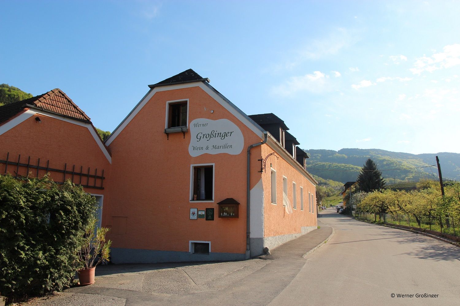 Der Heurige und Weinbaubetrieb Werner Großinger in Spitz an der Donau ist ein kleiner, feiner Familienbetrieb, der Weinbau und Heurigenkultur in harmonischer Weise verbindet. Mit rund 3,3 Hektar Rebfläche, vorwiegend in den steilen Terrassen des Spitzer Grabens, entstehen Weine mit Charakter, geprägt von den mineralischen Urgesteinsböden der Wachau. Die Palette reicht von klassischem Grünen Veltliner und Riesling über Weißburgunder und Neuburger bis hin zum aromatischen Gelben Muskateller. Neben dem Weinbau spielt auch der Obstbau eine wichtige Rolle: Die Original Wachauer Marille wird hier zertifiziert angebaut und in vielfältigen Produkten wie Marmeladen, Likören, Bränden und Nektar veredelt.