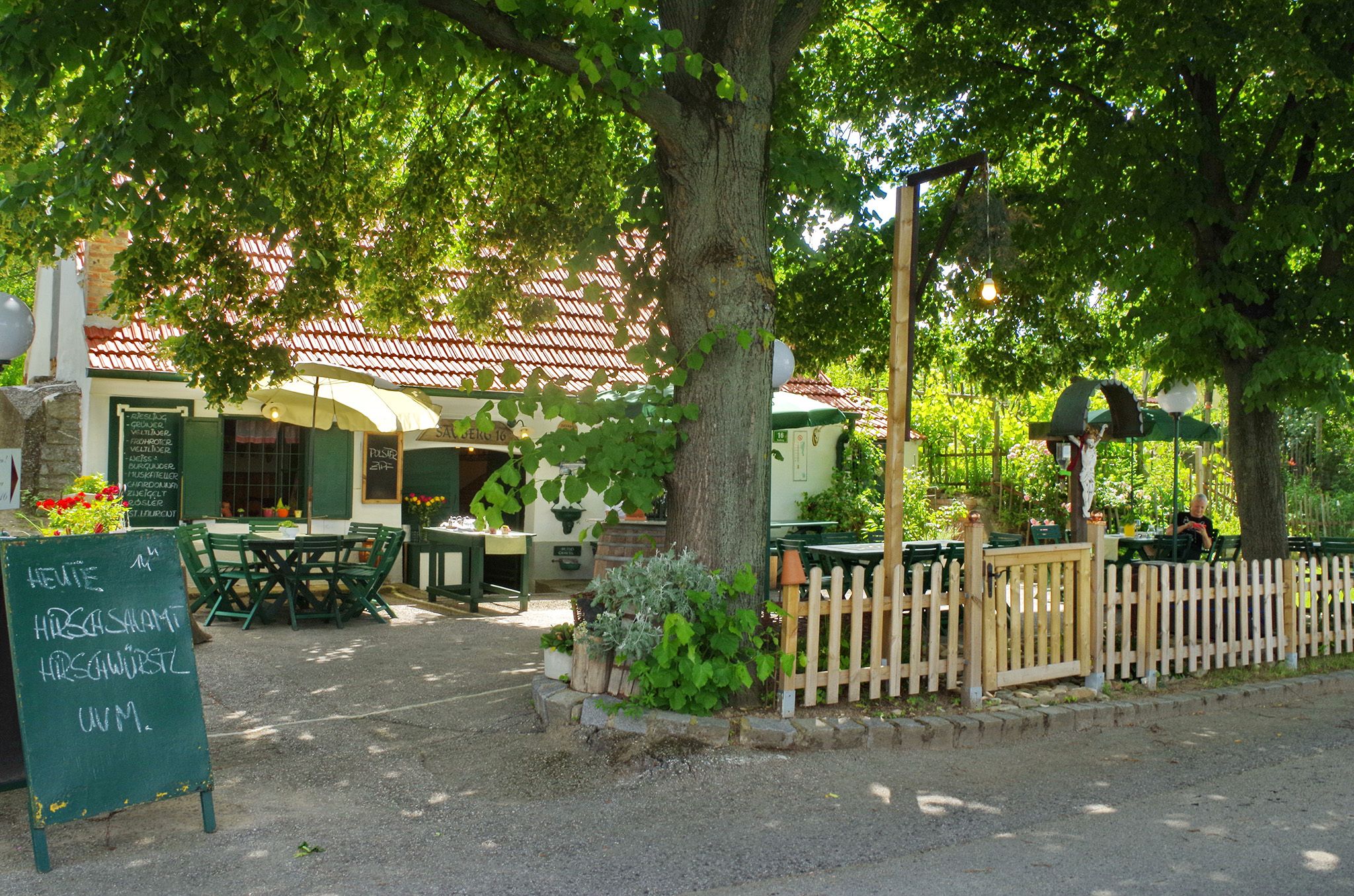 Sitzplätze im Heurigenkeller ca. 30 Personen, im Garten ca. 50 Personen (Gartenbetrieb bei Schönwetter)