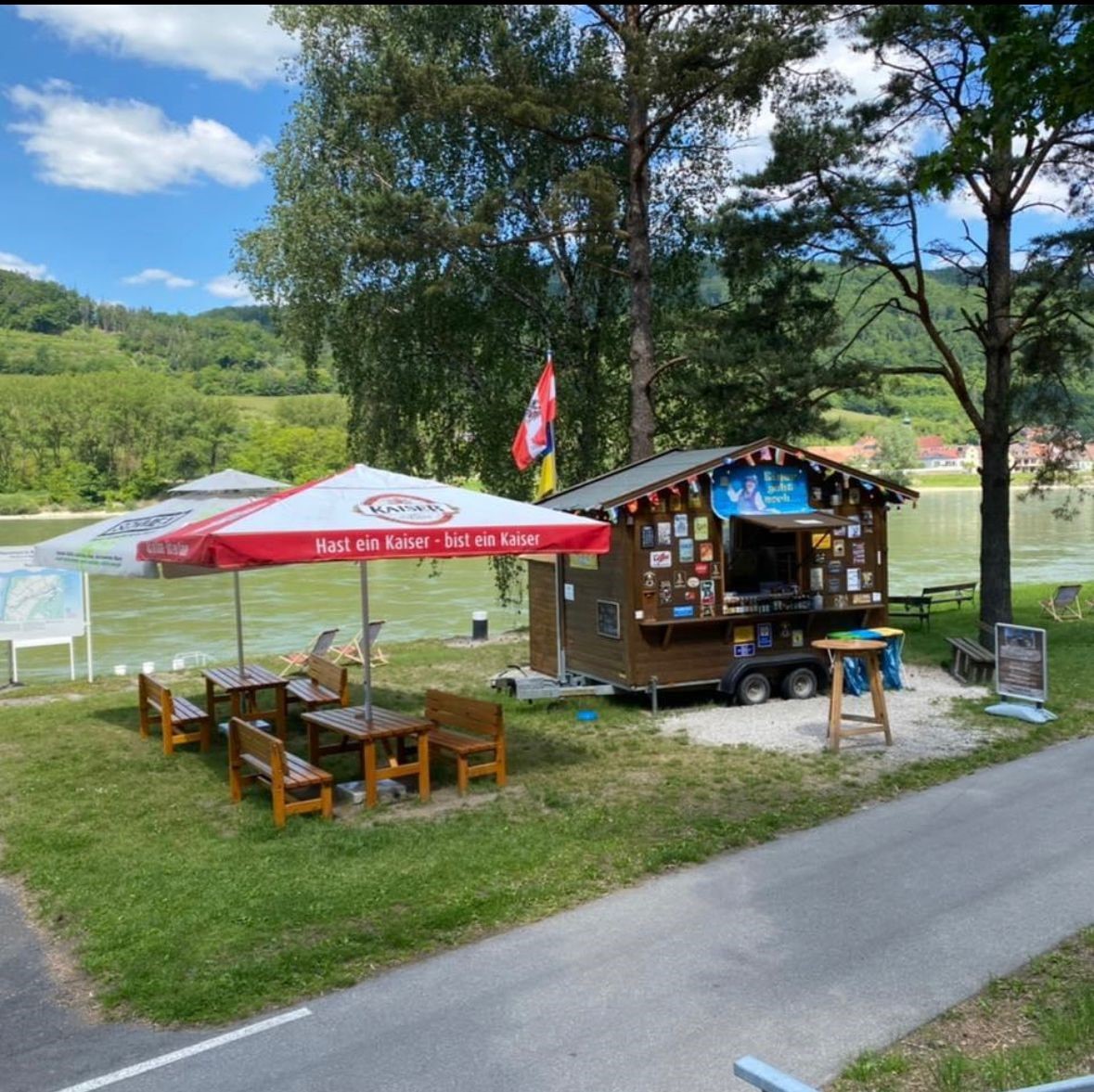 Ein Imbiss in der Wachau ist ein gemütlicher Ort, um lokale Spezialitäten und Snacks zu genießen. Dieser Imbiss bietet einfache, aber schmackhafte Gerichte an, die aus regionalen Zutaten zubereitet werden. Typische Angebote wie Würstchen, (Käsekrainer, Bratwurst, Hot-dog) verschiedene Bosner Varianten und natürlich Marillenprodukte, die für die Wachau besonders bekannt sind. Begleitend dazu werden häufig "ein weißer Gspritzter" oder Most angeboten, die in der Region produziert werden.