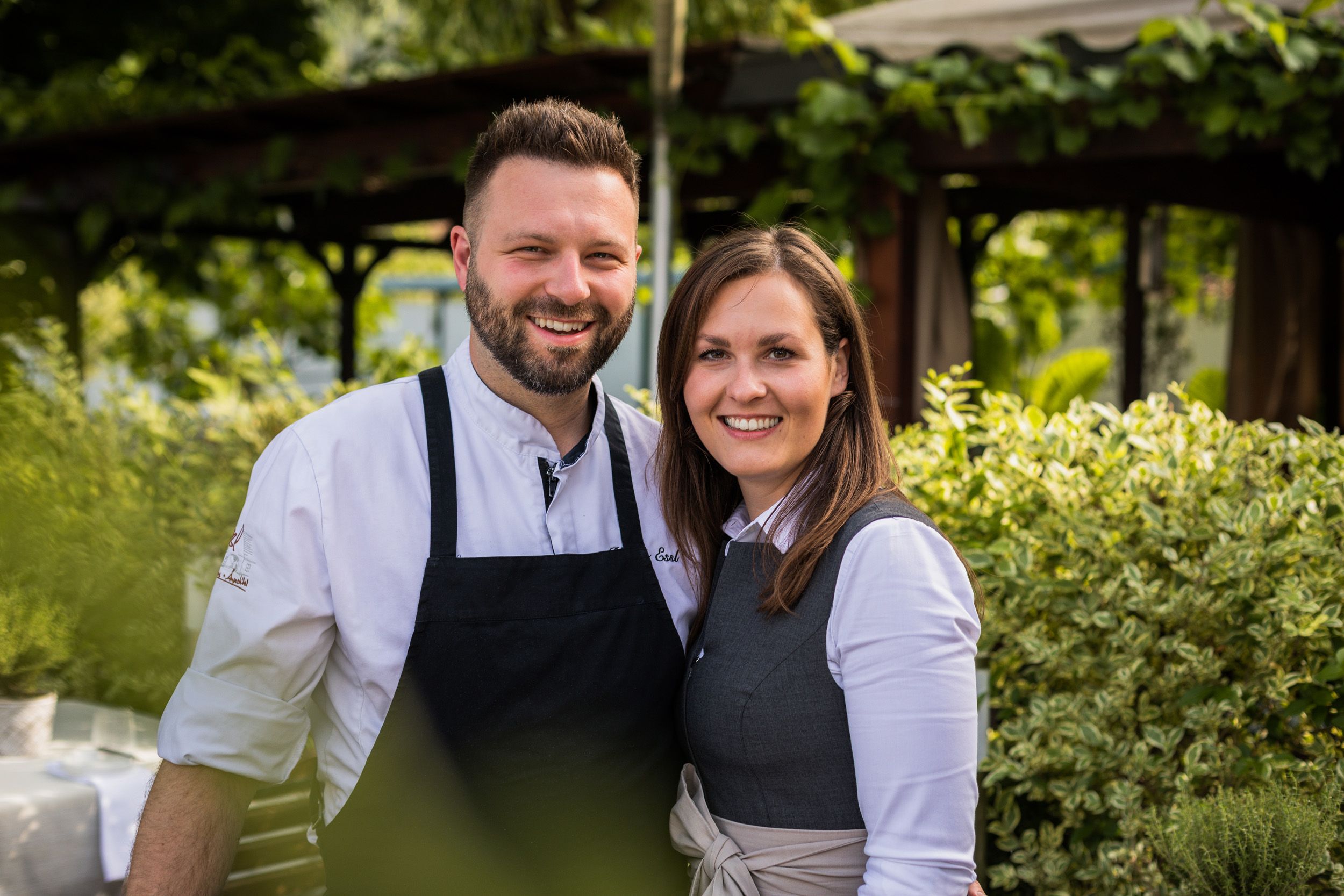 Alles hat seinen Ursprung. Der vom Landgasthaus Essl reicht bis ins Jahr 1989 zurück. Aus einem Holzstadl wurde ein Wirtshaus – die Geburtsstunde des „Winzerstüberls“. Klein, charmant und mit fünf Tischen im Innenraum. Der Rest ist bekannt: Christine und Franz Essl bauten das Landgasthaus in Rührsdorf in der Gemeinde Rossatz behutsam auf. Philipp und Marie-Theres Essl sorgen für den Feinschliff. Die beiden übernahmen im März 2023 den Betrieb. Der Haubenkoch, mit Ruf als traditionsverbundenen Innovator, ist bekannt dafür, das Beste aus der Region in seine Küchenlinie zu integrieren. Denn Fine Dining auf Drei-Hauben-Niveau und g‘standene Wirtshauskultur mit Grammelknödeln, Beuschel und Backhenderl passen hervorragend zusammen, wie er immer wieder beweist. Das knusprig gebackene Backhendl mit frischem Erdäpfel-Rahmgurkensalat wird nicht umsonst als „bestes Backhendl in Town“ tituliert. Die mit Buttermilch marinierte Lachsforelle mit Kohlrabi klingt nicht nur vielversprechend, sie ist es auch. Als Begleitung zu den Speisen fällt die Wahl selbstverständlich auf einen ausgezeichneten Wachauer Wein vom Weingut ums Eck.