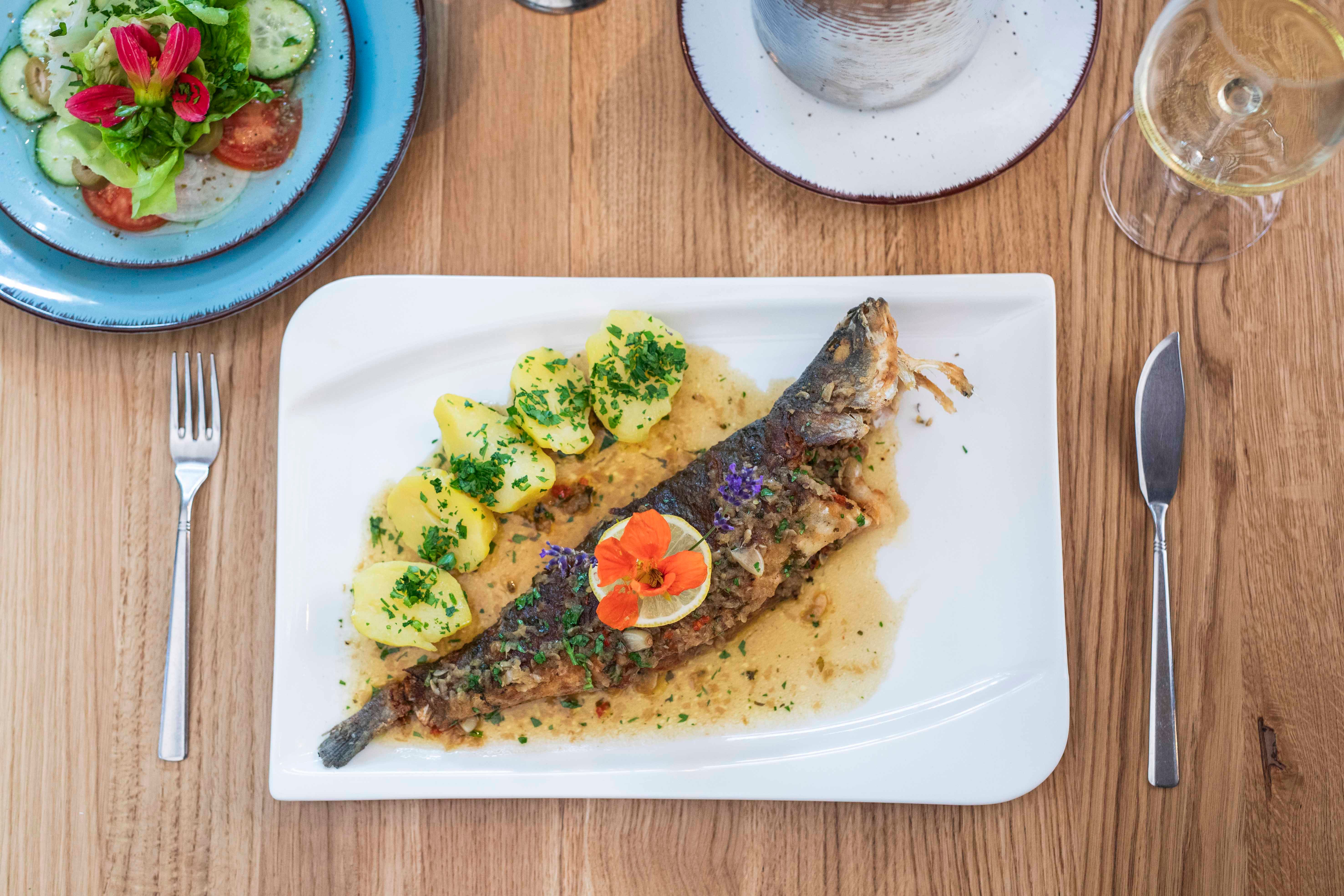 Der stilvoll gestaltete Innenbereich sowie der idyllische Gastgarten schaffen ein Ambiente, das zum Verweilen und Genießen einlädt. Eine fein abgestimmte Auswahl an spanischen Weinen und regionalen Tropfen begleitet das kulinarische Erlebnis stimmig.
