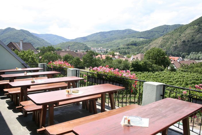Genießen Sie von unserer Heurigenterasse aus das wunderschöne Panorama der Wachau. Erfreuen Sie sich an unseren Veltlinern und Rieslingen bei einem unvergleichlichen Blick von Spitz und dem Tausendeimerberg bis nach St. Michael. Für den Genießer darf die deftige Jause natürlich nicht fehlen. Unser selbstgemachter, geräucherter Hirschschinken ist für jeden Gaumen ein Muss.