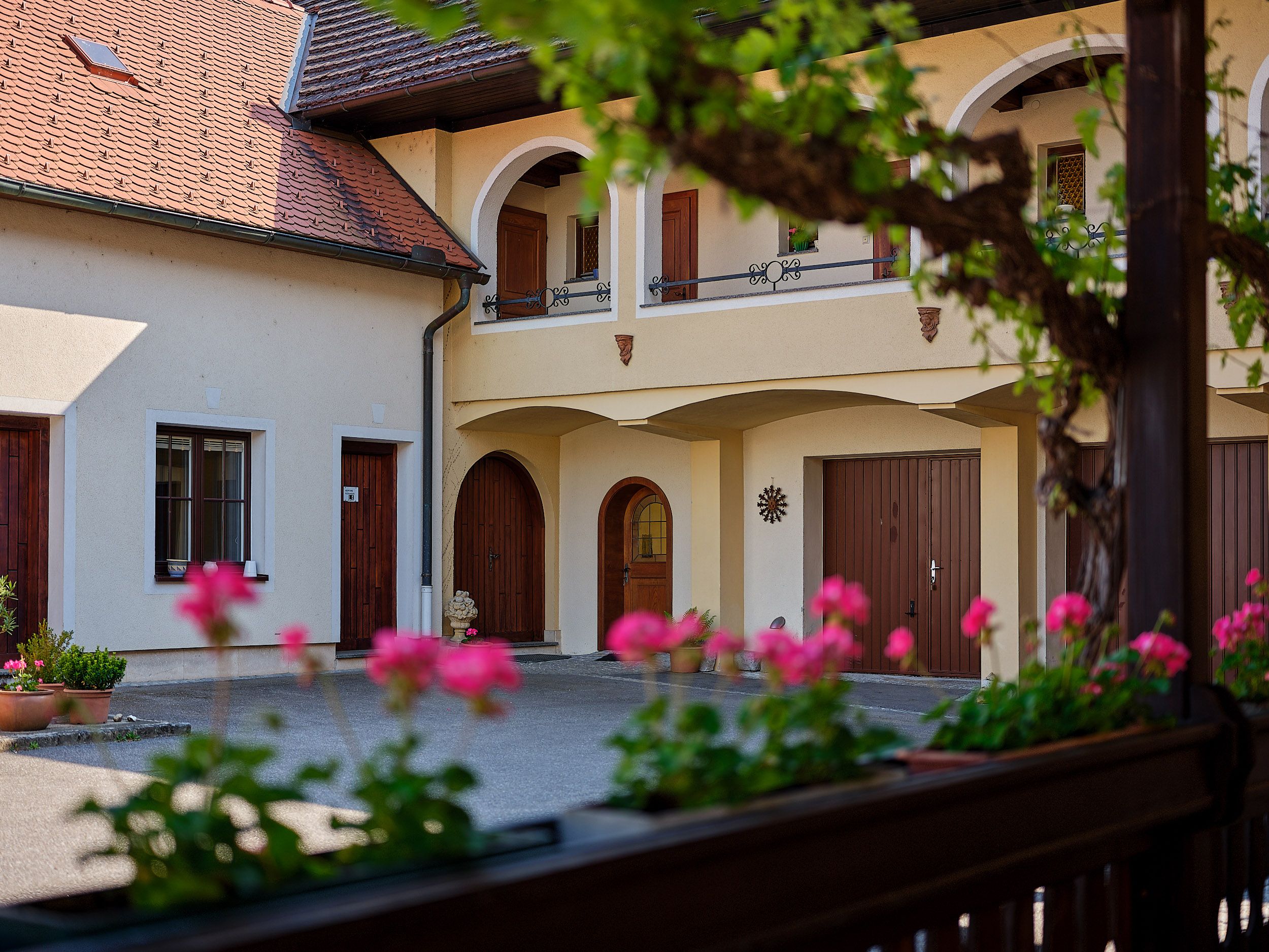 Nur fünf Gehminuten entfernt fließt die Donau, und mit der Autofähre erreicht man in 15 Minuten Spitz, wo Einkaufsmöglichkeiten zur Verfügung stehen. Das traditionelle Weingut bietet auf Anfrage Weinverkostungen in der hauseigenen Buschenschank an. Die Weine, Säfte, Edelbrände, Rose - Frizzante und Liköre wurden von A La Carte und Vinaria mehrfach ausgezeichnet. Die Bewirtschaftung der Weingärten erfolgt nach nachhaltigen und ökologischen Richtlinien, was die Qualität und den einzigartigen Geschmack der Produkte unterstreicht.