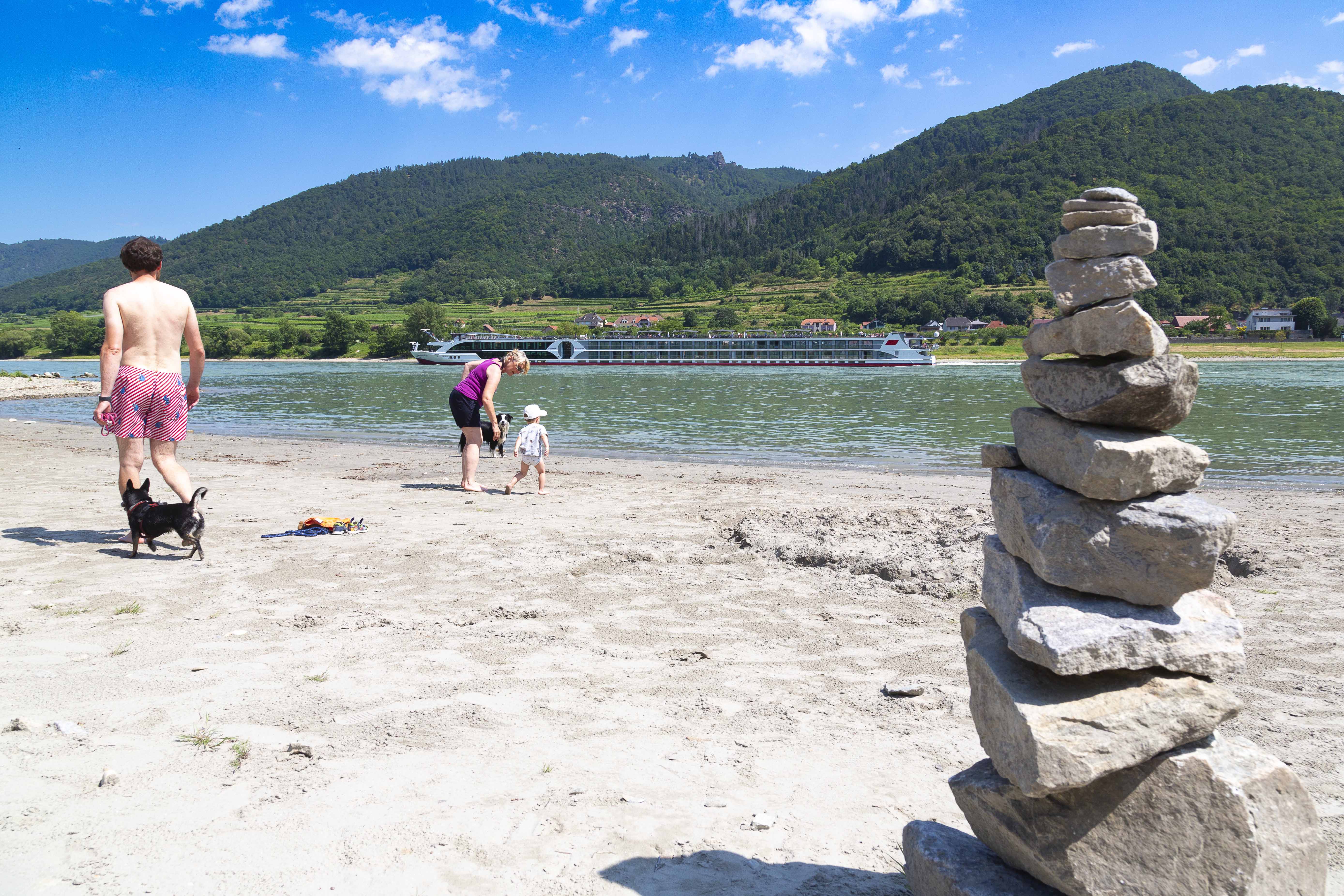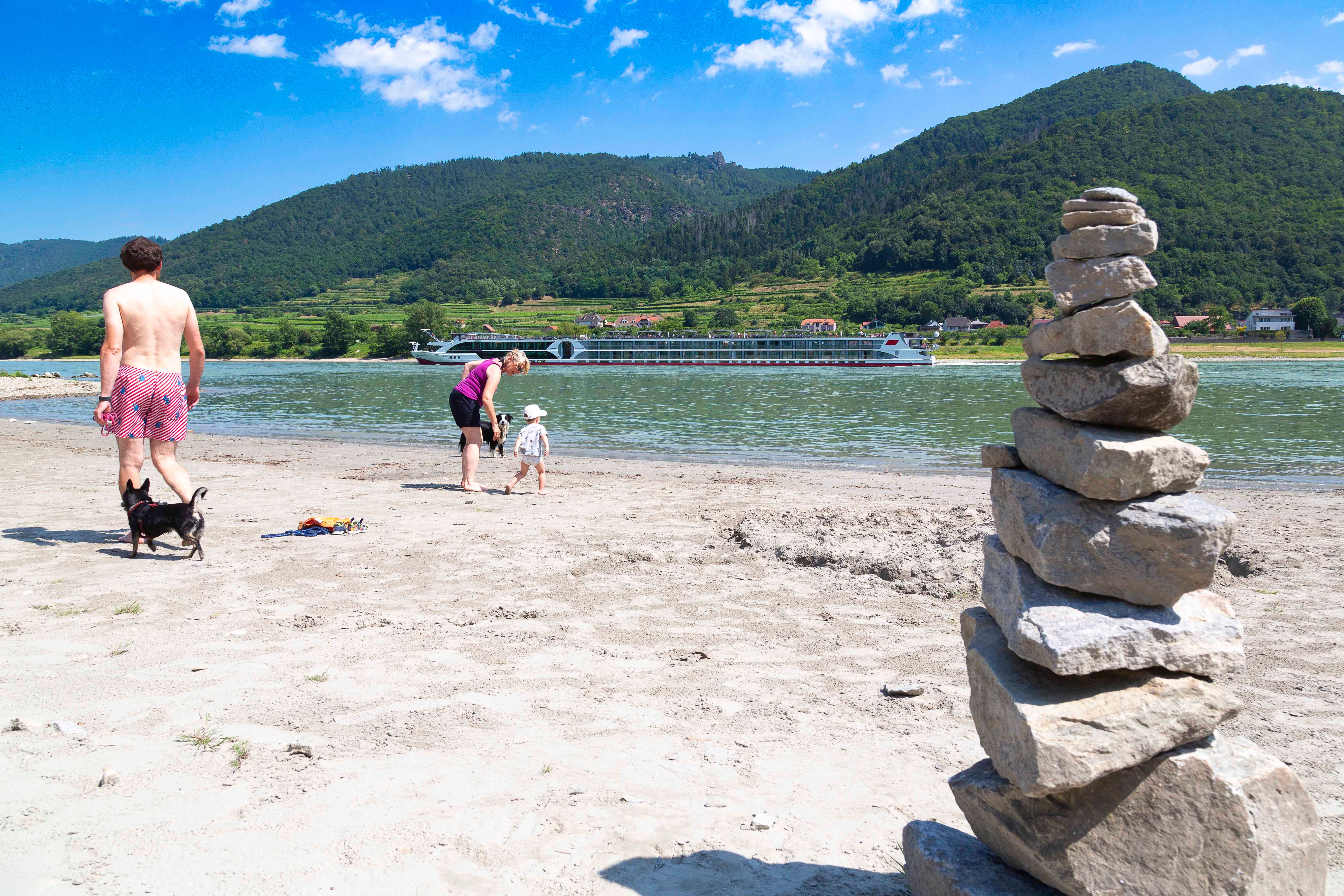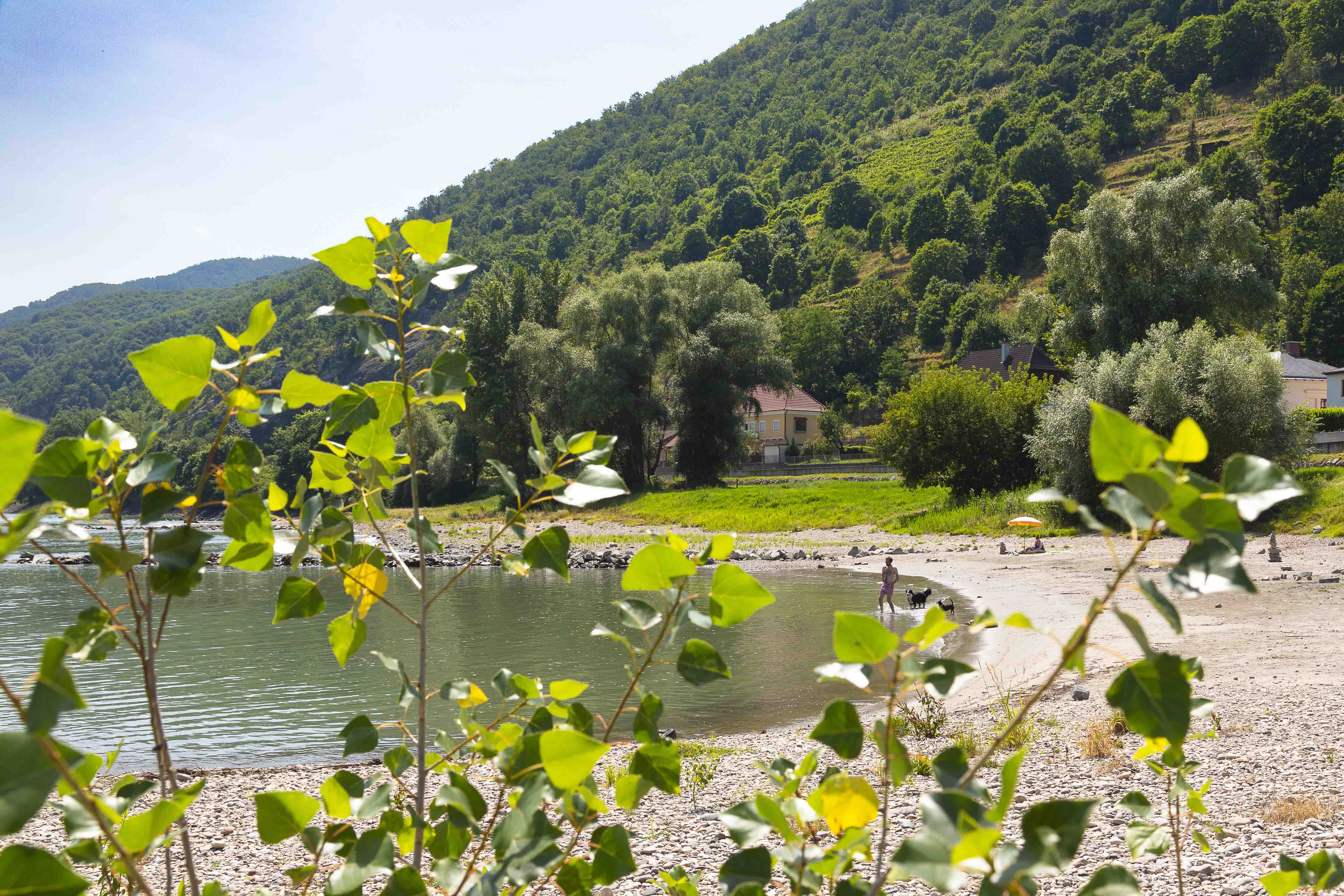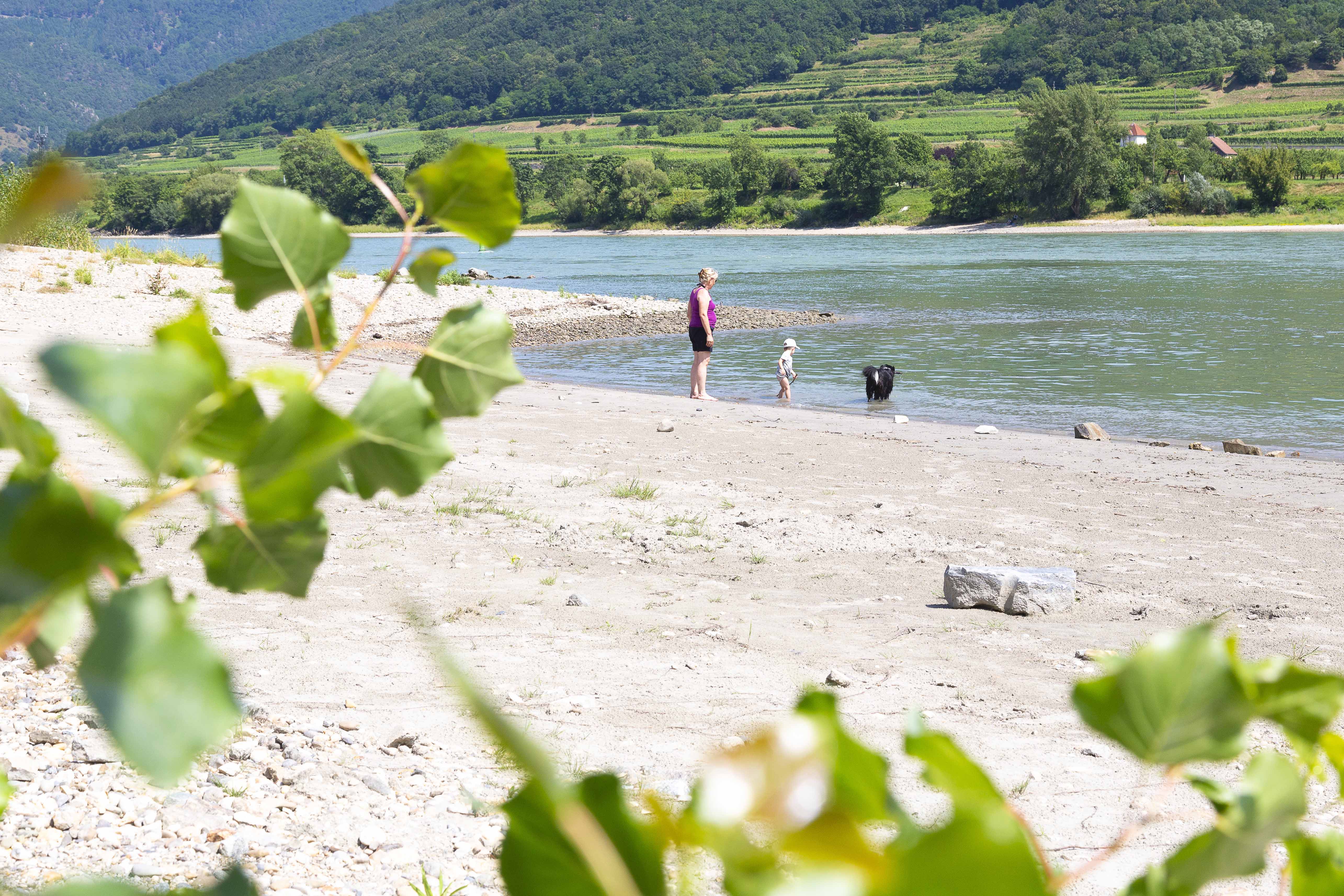 A Hinterhaus romjai alatt, a B3-as szövetségi út közvetlen közelében, apálykor gyönyörű homokos, kavicsos strand nyílik. Néhány lépcsőfok vezet le a Duna ezen szakaszára. Ez a hely ideális egy frissítő fürdőzésre a Duna vizében vagy egy rövid nyaralásra, és kutyák számára is alkalmas.