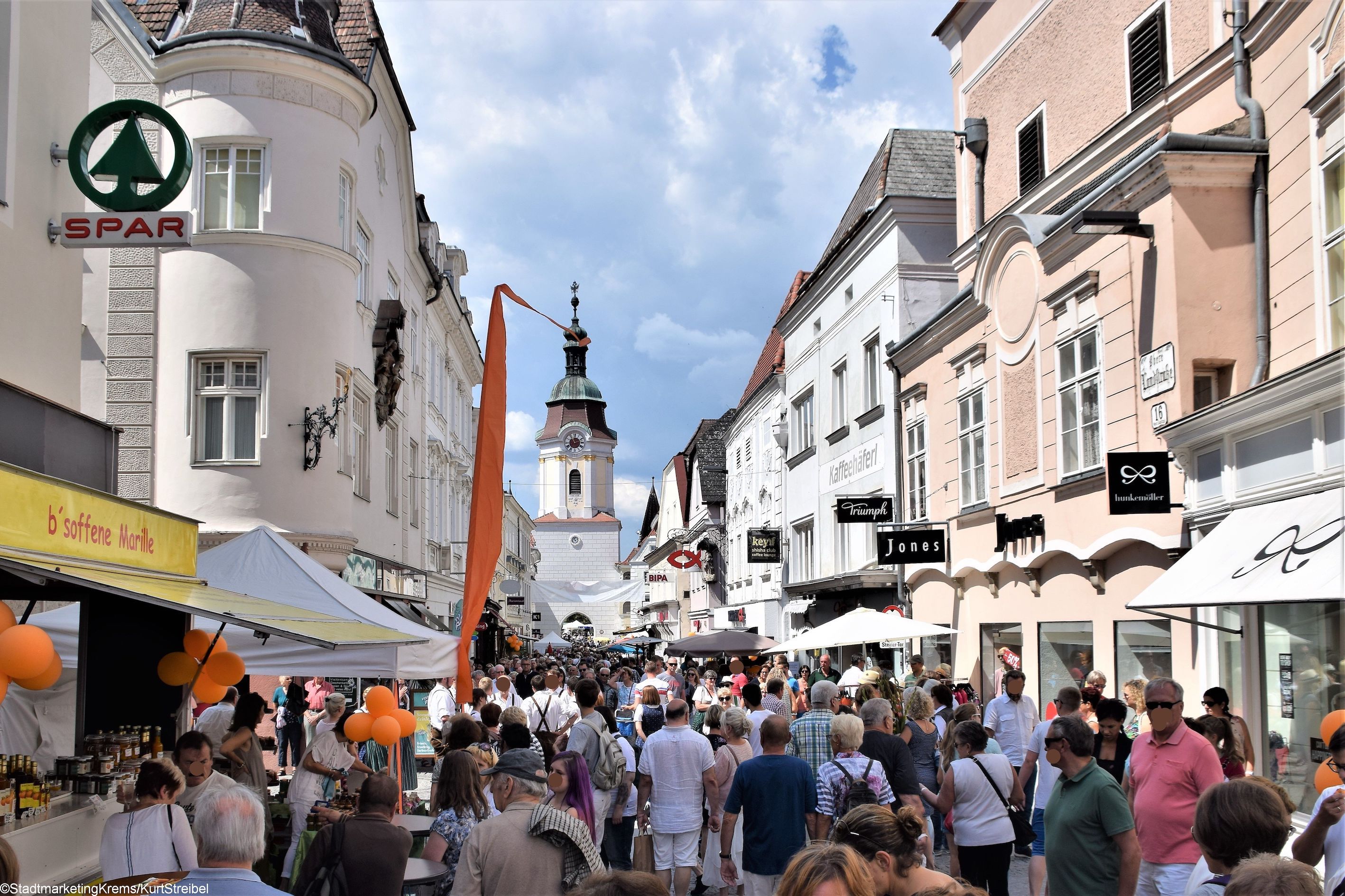 Nicht umsonst wurde die Kremser Innenstadt 2015 zur beliebtesten Einkaufsstraße Niederösterreichs gewählt: Sie gilt als eine der schönsten und lebendigsten Fußgängerzonen im ganzen Land. Gut 200 Betriebe haben sich vor der historischen Kulisse der Altstadt von Krems an der Donau angesiedelt – von Traditionshandwerk und Fachgeschäften bis hin zu jungen Unternehmen und ausgefallenen Boutiquen. Cafés und Restaurants runden den Flanier-Mix mitten im Weltkulturerbe Wachau ab. Wochenmärkte und Feste – wie das Genuss- und Kulturfest Alles Marille! im Juli, „Lange Einkaufsnächte“ sowie der Kremser Adventzauber – beleben die Einkaufsmeile das ganze Jahr über.