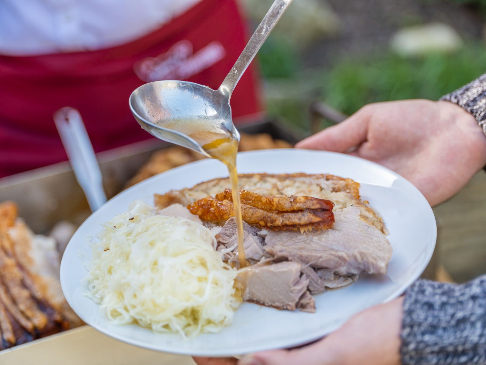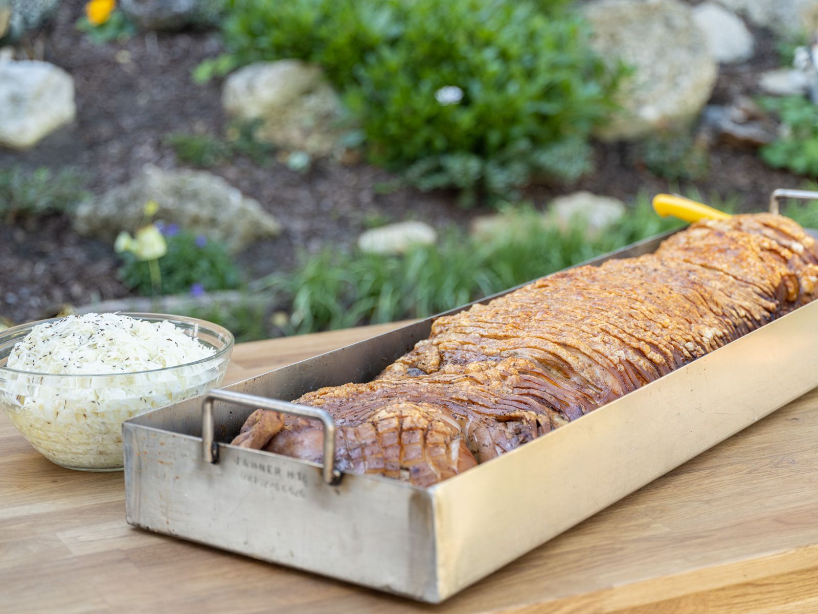 Die Zubereitung unserer köstlichen Spanferkel beginnt mit der Würzung. Als perfekt abgestimmte Beilage wird eine Semmelfülle im Bauch des Spanferkels mitgebraten. Auf Wunsch genießen Sie dazu selbstgemachten Krautsalat mit einer Marinade aus hofeigenem Rapsöl. Für die Semmelfülle und den Krautsalat werden ausschließlich Produkte aus unserer Region verwendet. Am Ende dürfen Sie sich auf eine goldbraune Schwarte, zartes Fleisch und köstlichen Bratensaft freuen.