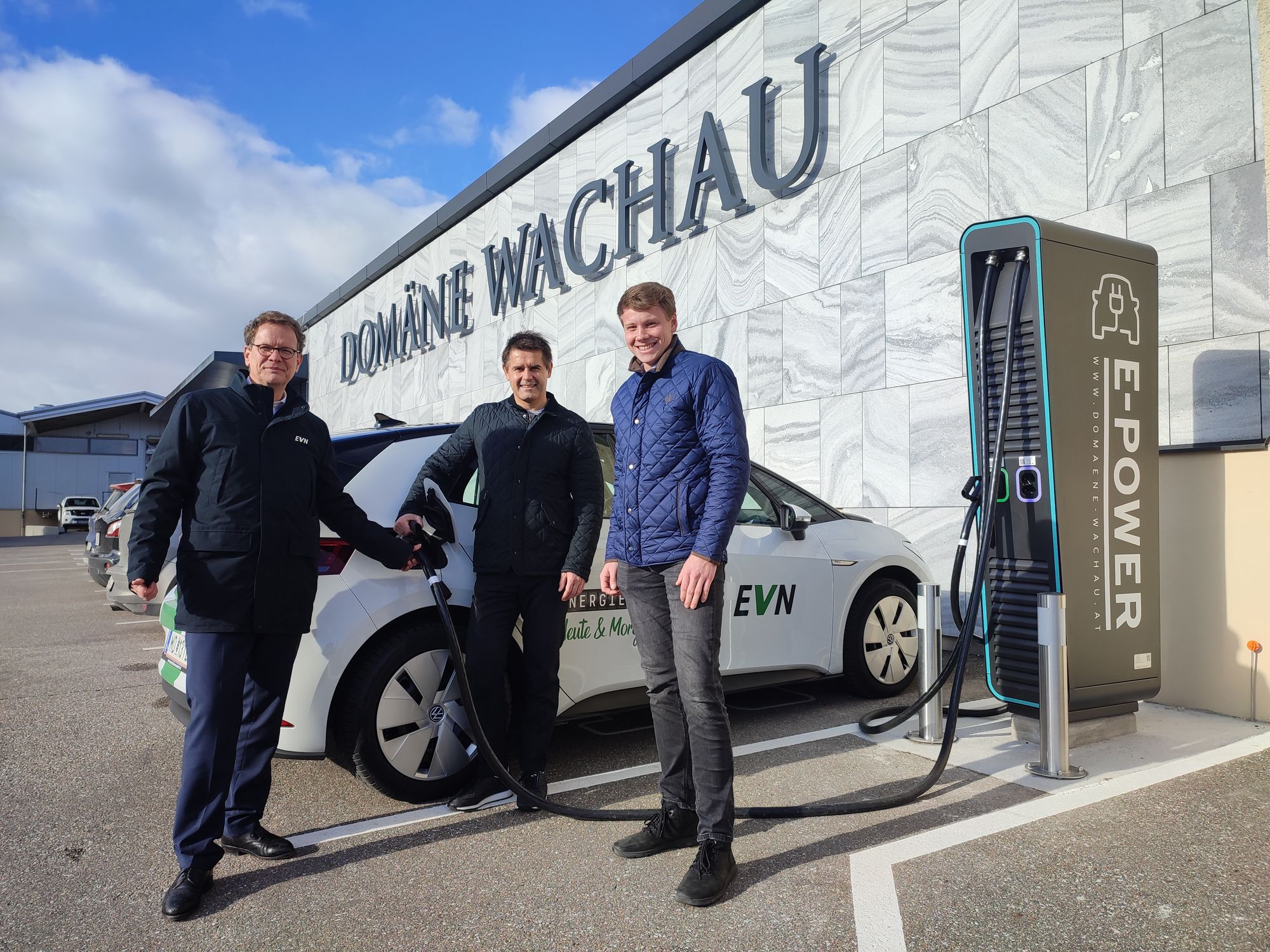 Neben einer bereits bestehenden E-Bike-Ladestation wurde auch eine E-Tankstelle installiert. Roman Horvath dazu: "Die logische Konsequenz unseres Nachhaltigkeitskonzepts und eine adäquate Reaktion auf die Zeichen der Zeit“. Allein im letzten Jahr gab es eine Verdreifachung der Neuanmeldungen von reinen Elektroautos. „Je früher wir die Weichen Richtung Zukunft stellen, desto besser. Über kurz oder lang werden E-Tankstellen eine ganz normale Serviceleistung für die Kunden sein.“ Jene der Domäne Wachau, welche von der EVN installiert wurde, ist mit zwei DC-Ladepunkten ausgestattet, an denen jeweils bis zu 75 kW getankt werden können. Der Strom dafür stammt zu 100 Prozent aus erneuerbaren Energien.