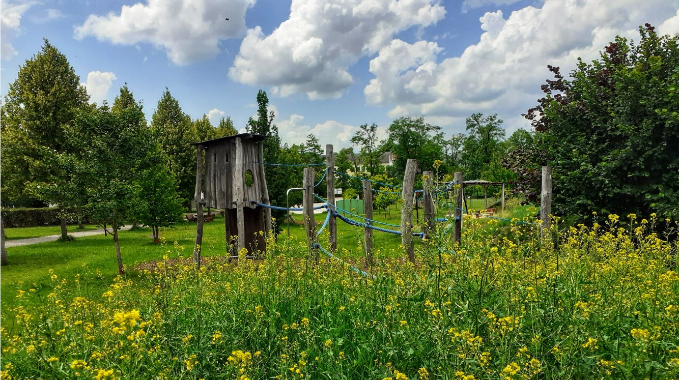 Blauschotenstrauch, Indianerbanane, Maibeeren, rotfleischige Pfirsiche und Maulbeeren laden das Jahr über zur sinnlichen Entdeckung ein. Integriert ist ein naturnah gestalteter Kinderspielplatz. Die Anlage ist eine Kooperation von Permakultur Austria, der Marktgemeinde Kirchberg am Wagram und der Aktion „Natur im Garten“ des Bundeslandes Niederösterreich.