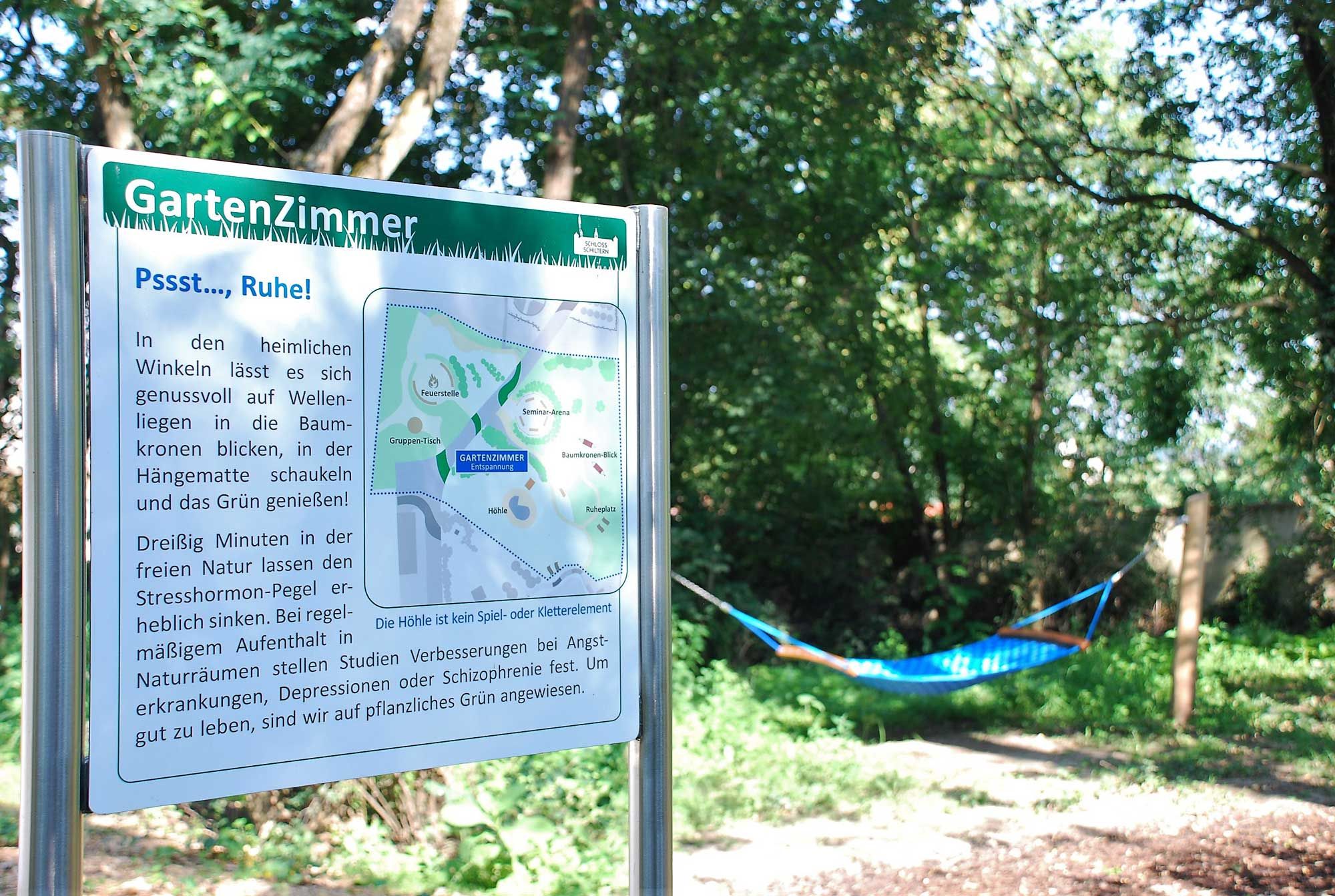 Wer Raum zum Durchatmen und Entspannen sucht, wird im Park von Schloss Schiltern fündig. Hier spürt man die heilsame Wirkung des Grüns auf Körper und Geist. Während das Psychosziale Zentrum Schiltern psychisch kranke Menschen bei der Re-Integration in die Arbeitswelt unterstützt, steht der Therapiegarten im Schlosspark allen Ruhesuchenden offen. In den verschiedenen Bereichen des Gartens findet man aber nicht nur erholsames Grün und Anregungen für alle Sinne, sondern auch Bereiche, die Beweglichkeit und Konzentration trainieren.
