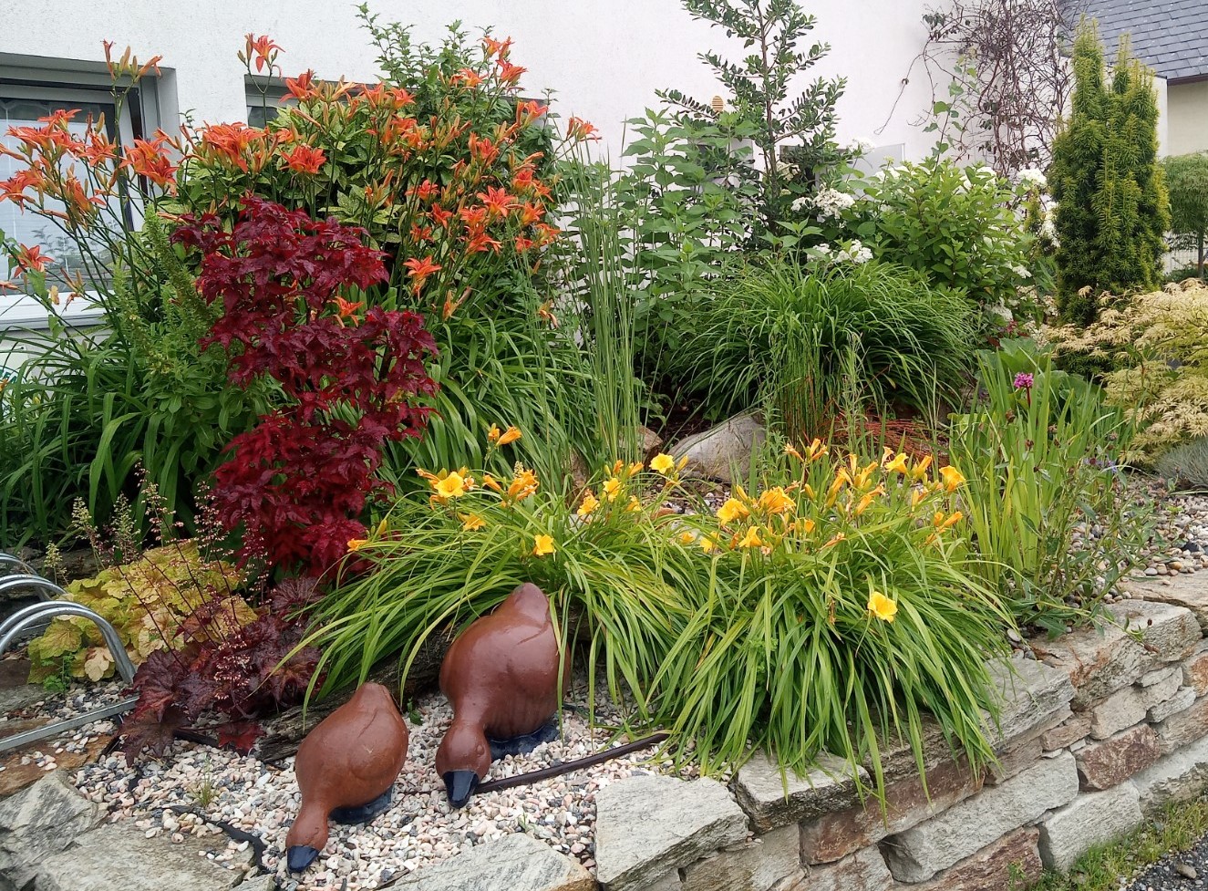 Als Partnerbetrieb von Natur im Garten werden viele heimische und bienenfreundliche Gehölze bepflanzt, diese lassen sich auch hervorragend mit Exoten kombinieren.