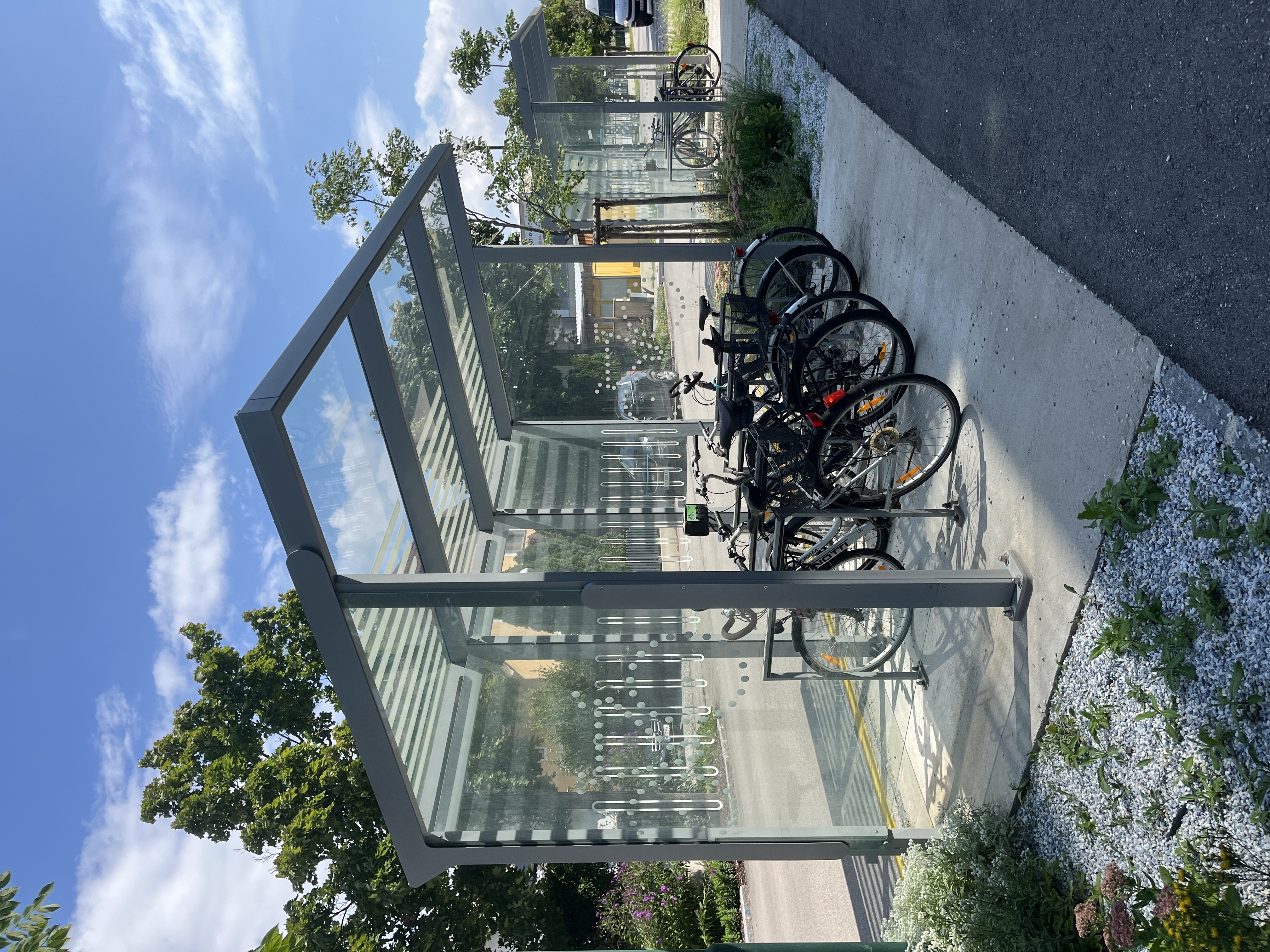 Die Nutzung der Ladestation ist kostenlos und jederzeit möglich, da sich in den beiden kleinen überdachten Ladehäuschen jeweils drei haushaltsübliche Steckdosen befinden. So können bis zu sechs E-Bikes gleichzeitig aufgeladen werden – ein eigenes Ladekabel ist mitzubringen.