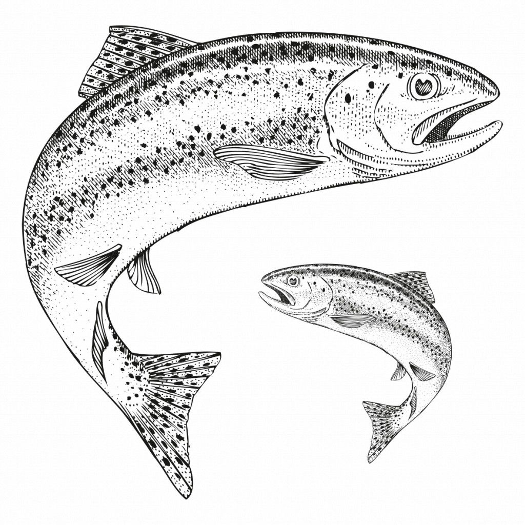 Ganze Forellen aus heimischer Zucht, am offenen Feuer gebraten, mit Schwarzbrot.