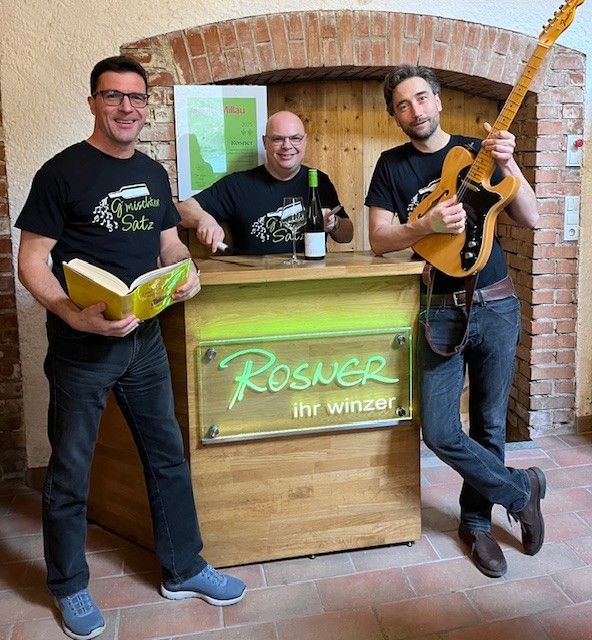 Gerald Eder, Raphael Lehmann & Erwin Rauscher, auch bekannt als G´mischter Satz, präsentieren in Mitten der Weingärten der Familie Rosner mit „Wienerisches und Weinehrliches“ ihr bereits drittes Programm. Mit Wortwitz & Humor, Musik & Parodie, Wienerischem Flair & Weinanekdoten garantieren die drei Protagonisten wieder für Stimmung, Unterhaltung und einen Angriff auf die Lachmuskeln. Kulinarisch verfeinert wird das Ganze mit köstlichen Schmankerln und ausgezeichneten Weinen der Winzerfamilie Rosner.