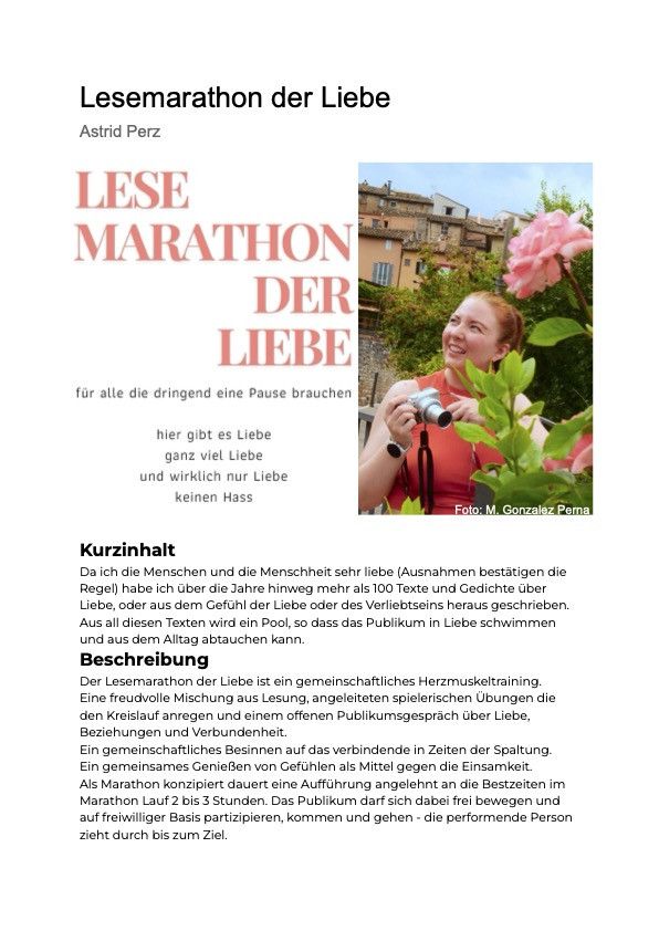 Eine freudvolle Mischung aus Lesung, angeleiteten spielerischen Übungen die den Kreislauf anregen und einem offenen Publikumsgespräch über Liebe, Beziehungen und Verbundenheit.