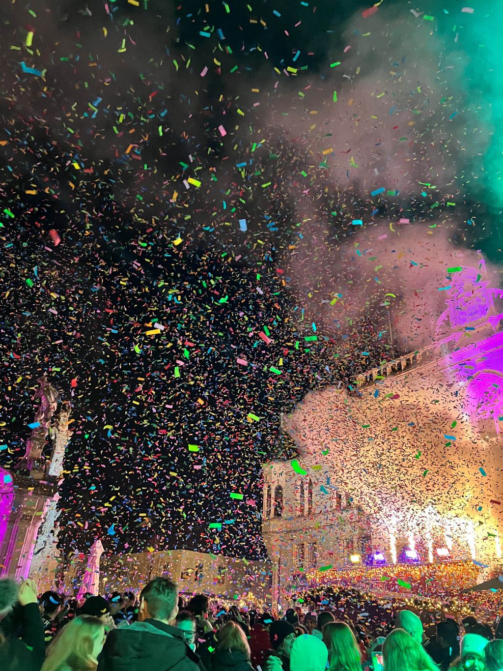 Die Gastronomie-Hütten am Adventmarkt haben geöffnet und verwöhnen Sie mit warmen Speisen, Snacks sowie heißen und kalten Getränken – perfekt für eine lange Silvesternacht unter freiem Himmel. Wenn die letzten Sekunden des Jahres zählen, steigt die Spannung, bis schließlich das neue Jahr mit einem Konfetti-Feuerwerk willkommen geheißen wird.