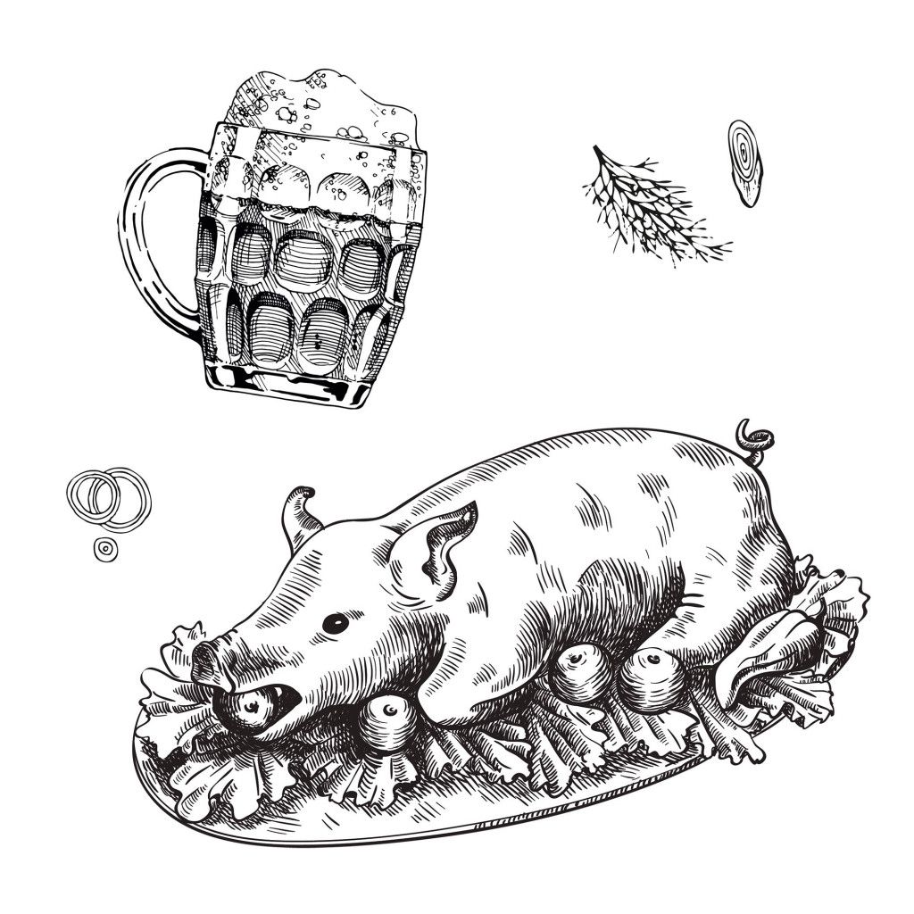 Wir bieten Euch ein gefülltes Spanferkel, vom Buffet mit Beilagen und Salaten.