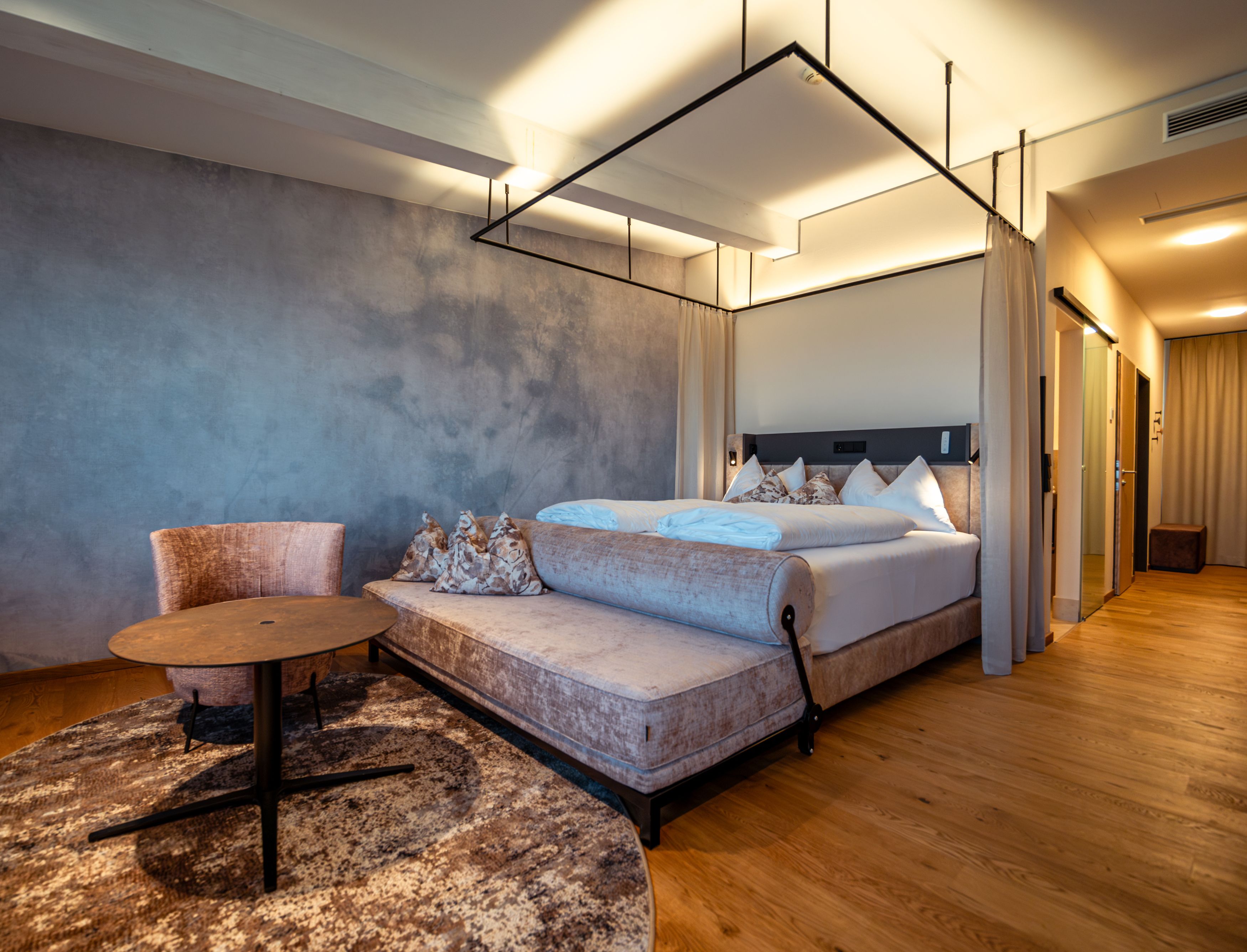 Zusätzlich zum grandiosen Infinity-Pool hat das hoteleigene „Wachauf-SPA“ noch einiges mehr zu bieten: verschiedene Saunen, Infrarotkabine, Sole-Dampfbad, Fitnessraum, Ruheraum, Sky-Lounge etc. Alles da.