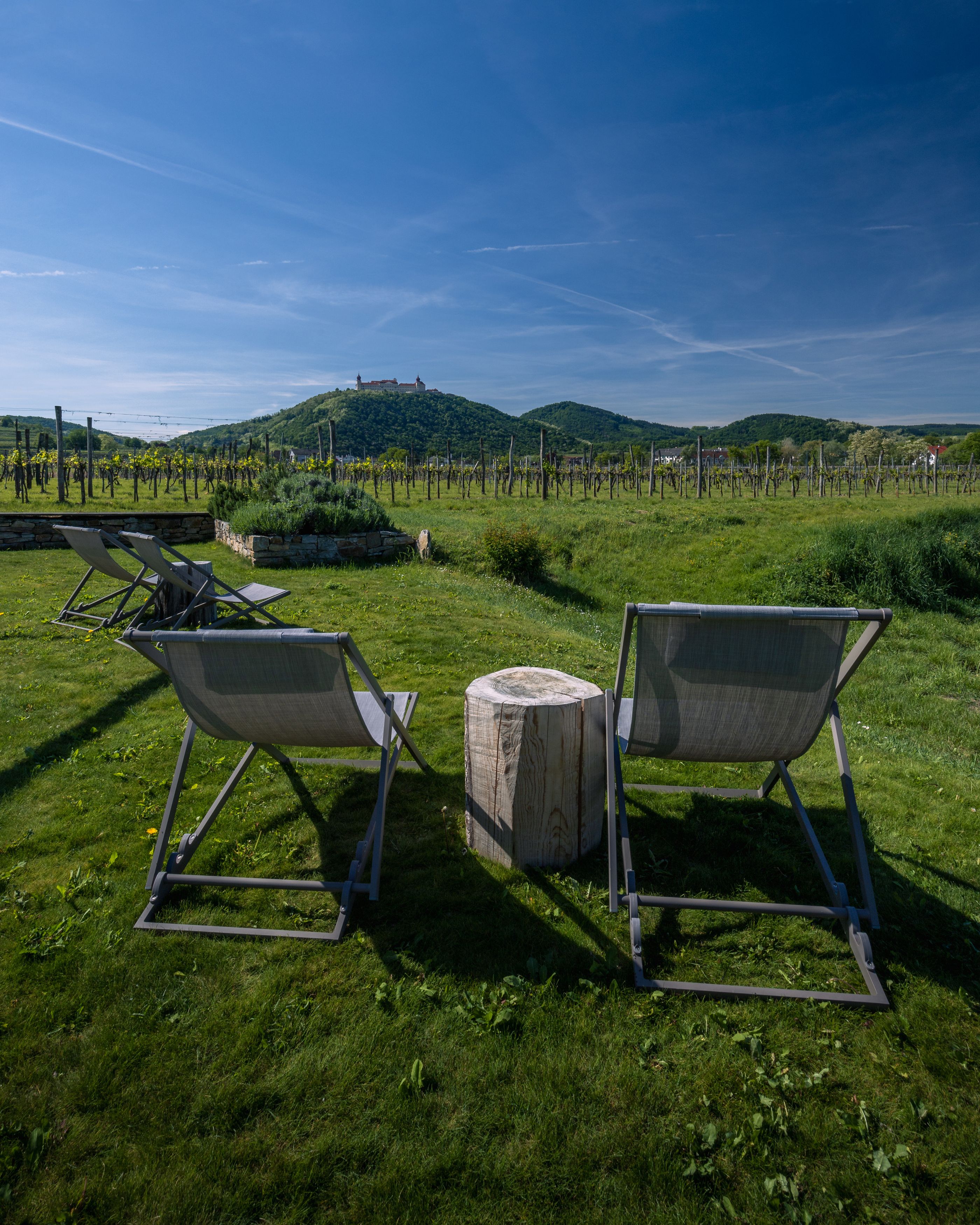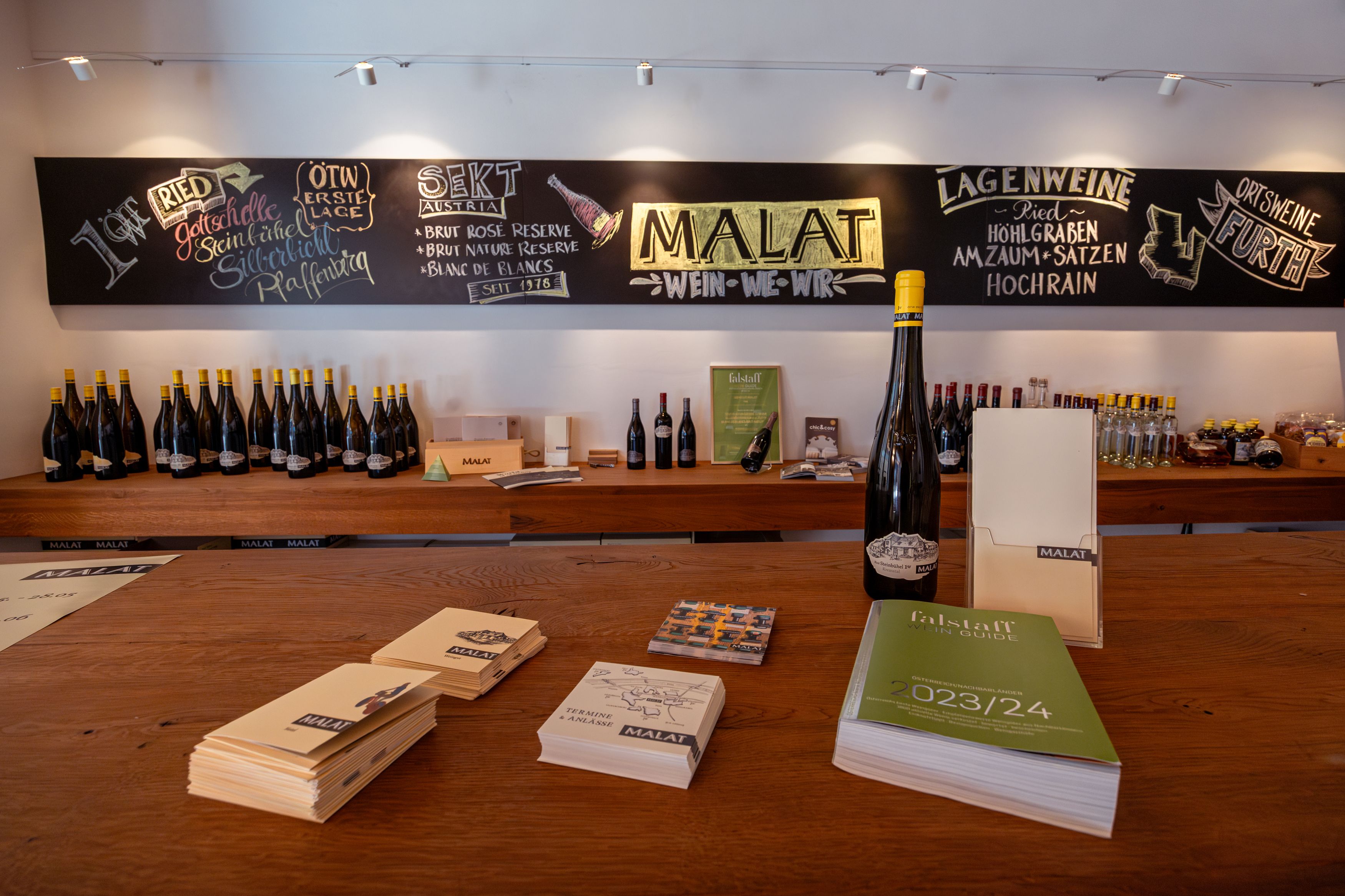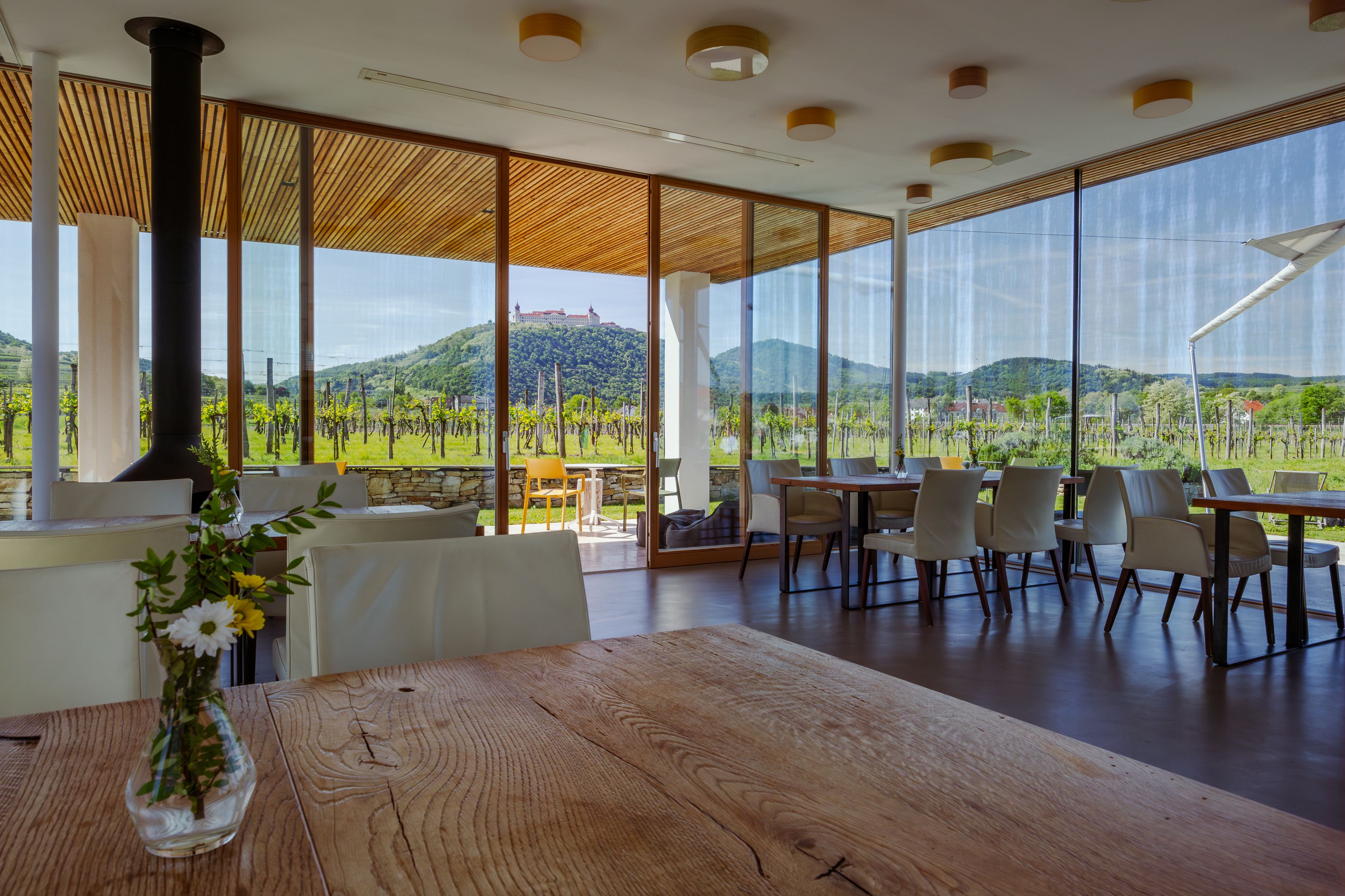 Direkt am Weingut Malat wurde ein altes Hafnerhaus aufwendig zum Hotel umgebaut – ganz modern, aber mit viel Holz und Stein als Hommage an die alten Zeiten. Es bietet insgesamt 10 Suiten mit hochwertigen Wittmann-Möbeln und einem atemberaubenden Blick auf das Stift Göttweig sowie die umliegenden Weingärten. Die Gäste sollen sich hier wie zuhause fühlen. Darum darf man im Hotel ganz einfach eine Flasche Wein aus dem Kühlschrank nehmen, eine Schallplatte auflegen und sich ein oder mehr Gläschen davon auf der Terrasse gönnen.