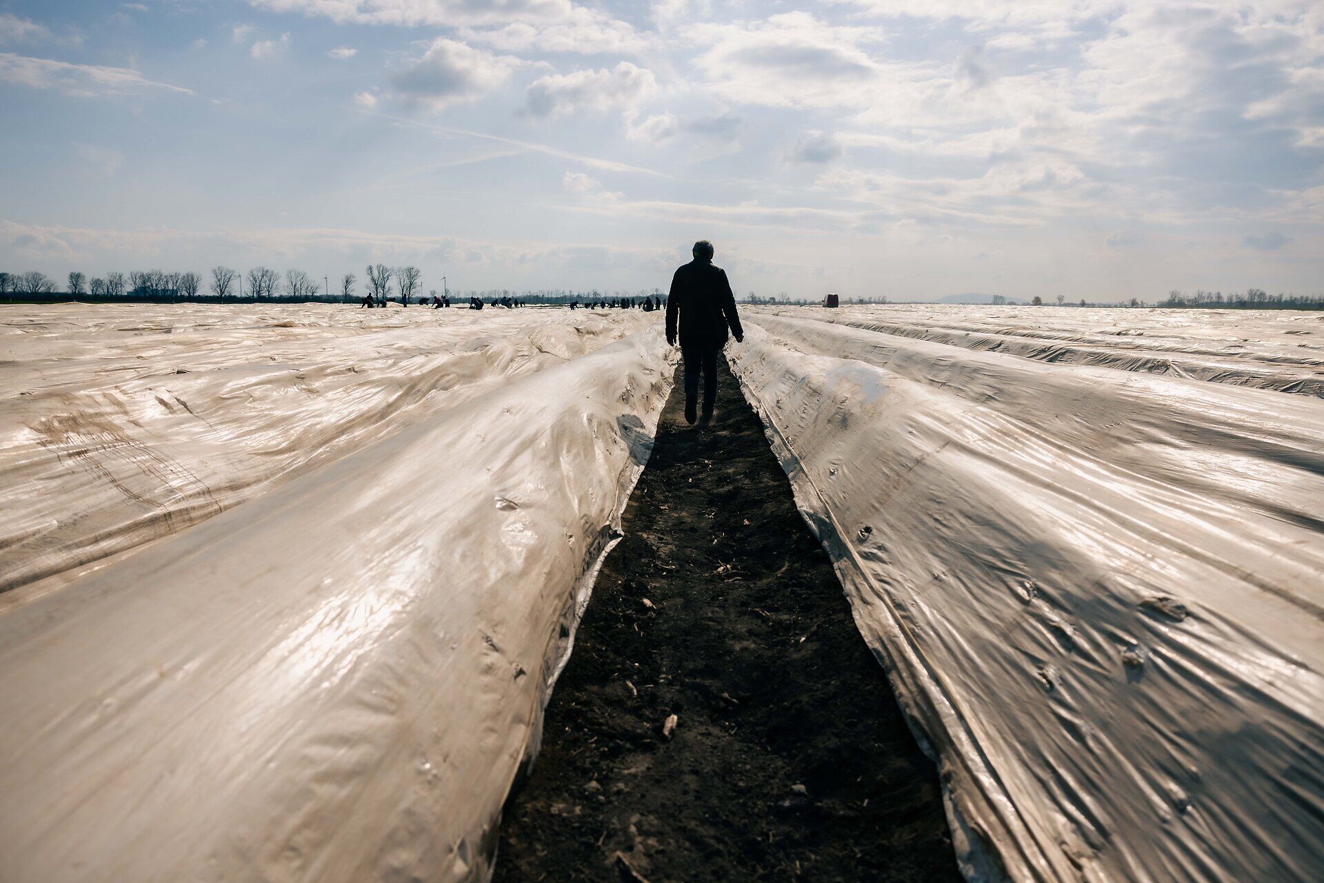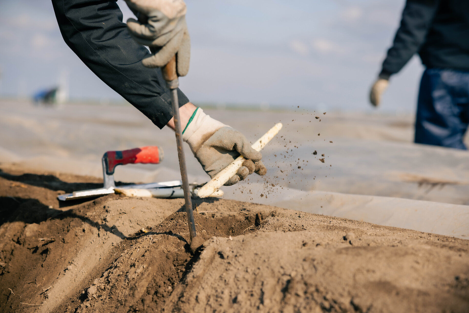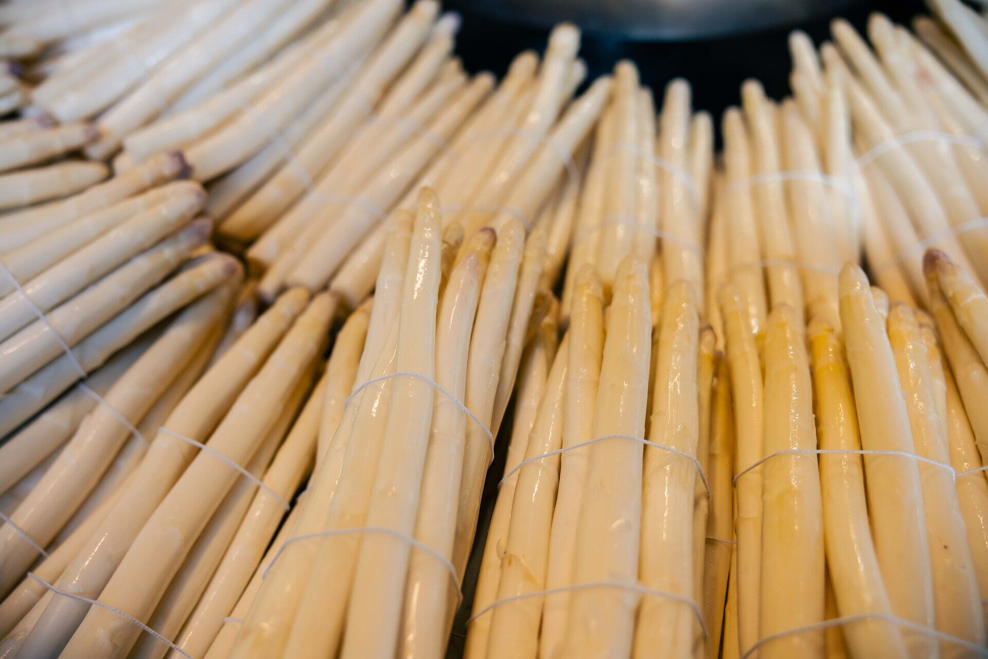 Bleichspargel. Grünspargel. Purpurspargel. Wenn man genau schaut, zeigt sich das Gemüse von seiner bunten Seite. Der weiße Spargel bleibt so blass, weil er Zeit seines Lebens – also während der Vegetationsperiode – nie Sonnenlicht zu sehen bekommt. Gut geschützt wächst er inmitten der Erdhügel heran – bedeckt von Folien, mit denen die Spargelbauern die Temperatur steuern. Die weiße Seite reflektiert das Sonnenlicht und hat kühlende Wirkung. Schwarze Seite nach oben bedeutet: mehr Wärme für den Boden, der Spargel wächst schneller. Zwischen fünf Millimeter und fünf Zentimeter legt er dann pro Tag zu – je nach Temperatur. Eine logistische Herausforderung für uns, weil das Wachstum so schnell gehen kann. Beim grünen Spargel sind sogar bis zu 15 Zentimeter pro Tag möglich.