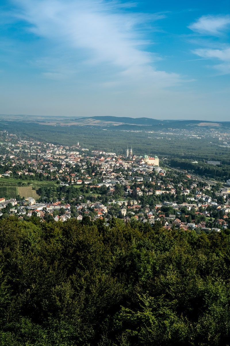 Nach 1,1 km haben wir einen wunderbaren Blick auf das Chorherrenstift Klosterneuburg.