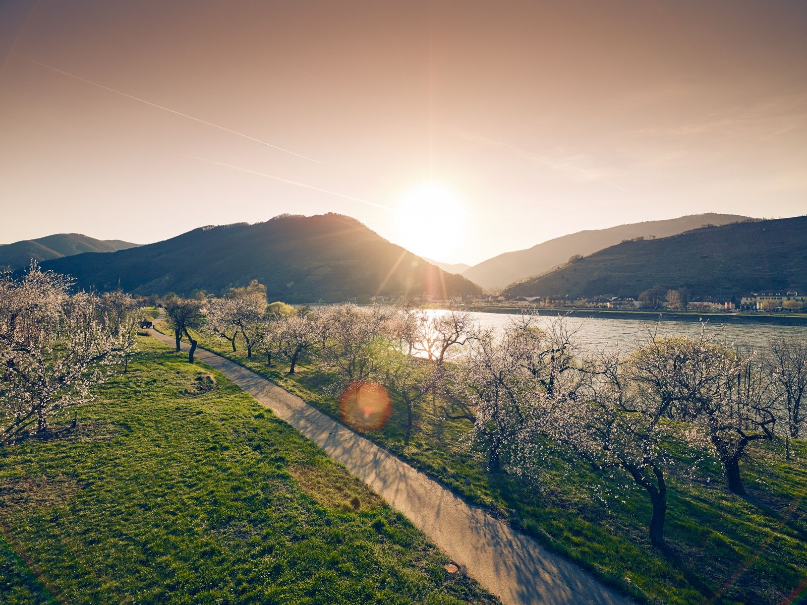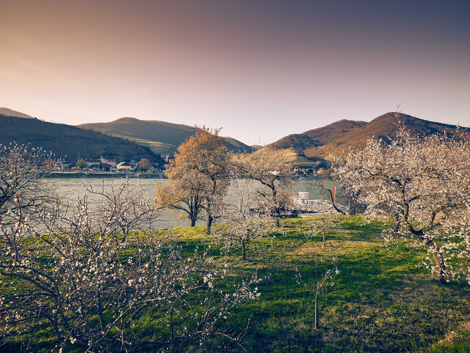 Die Etappe 1 der Marillenmeile präsentiert wunderschöne Marillengärten zwischen Oberarnsdorf und Mitterarnsdorf mit Blick auf die Donau.