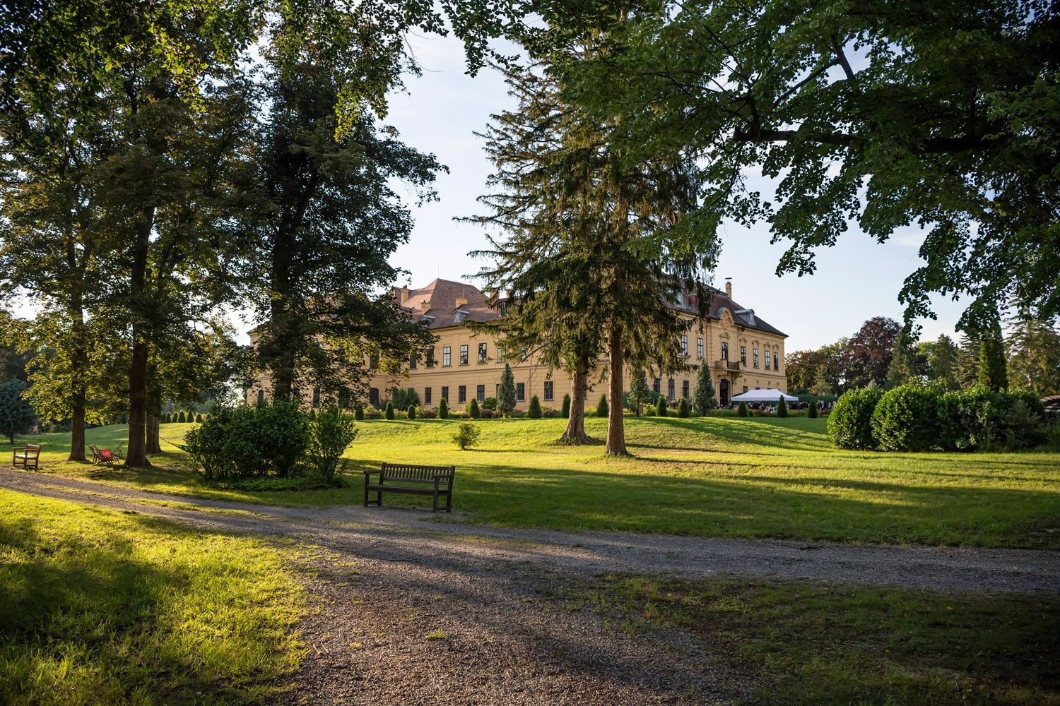 Der Weg führt auch durch den Eckartsauer Schlosspark, der vor etwa hundert Jahren rund um das Schloss als großzügiger Landschaftspark angelegt wurde und heute wieder seinen ganzen Charme entfaltet. Gönnen Sie sich eine Auszeit in den Hängematten, Liegestühlen oder Baumnestern und lauschen Sie dem Gezwitscher der Vögel.