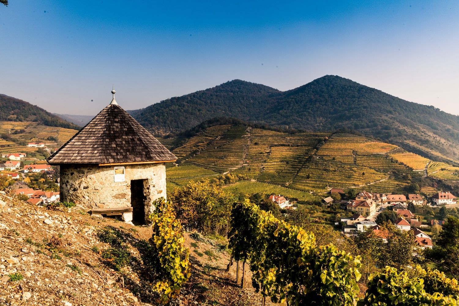 Die Etappe von Spitz nach Mühldorf führt vom traditionsreichen Weinhauerort Spitz im Herzen der Wachau in eine abwechslungsreiche Kulturlandschaft aus Weinbergen, Wäldern und stillen Tälern. Über die markanten Wein- und Aussichtsberge Tausendeimerberg und Setzberg eröffnet sich der Weg in die eindrucksvolle Steinterrassen-Weinlandschaft des Spitzer Grabens, die zu den charakteristischsten Weinbaugebieten der Region zählt. Herrliche Rieden, lichte Eichen- und Buchenwälder sowie mehrere Rasthütten des Vereins Marivino begleiten diesen landschaftlich vielfältigen Abschnitt.