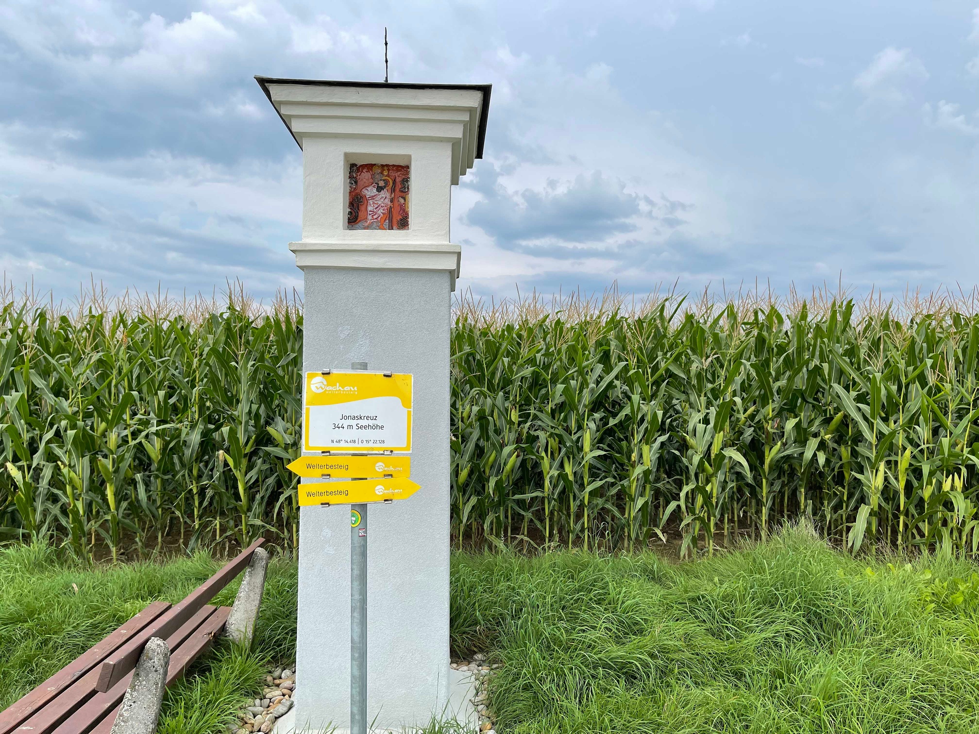 Die Etappe von Melk nach Aggsbach Dorf beginnt am Hauptplatz in Melk und führt vorbei am barocken Stift Melk hinauf zum Pielachberg. Über das Jonaskreuz öffnet sich ein weiter Panoramablick auf die Donau, den Jauerling und die umliegende Landschaft. Ein historischer Güterweg leitet anschließend nach Schönbühel, dessen markantes Schloss hoch über dem Fluss das Landschaftsbild prägt.