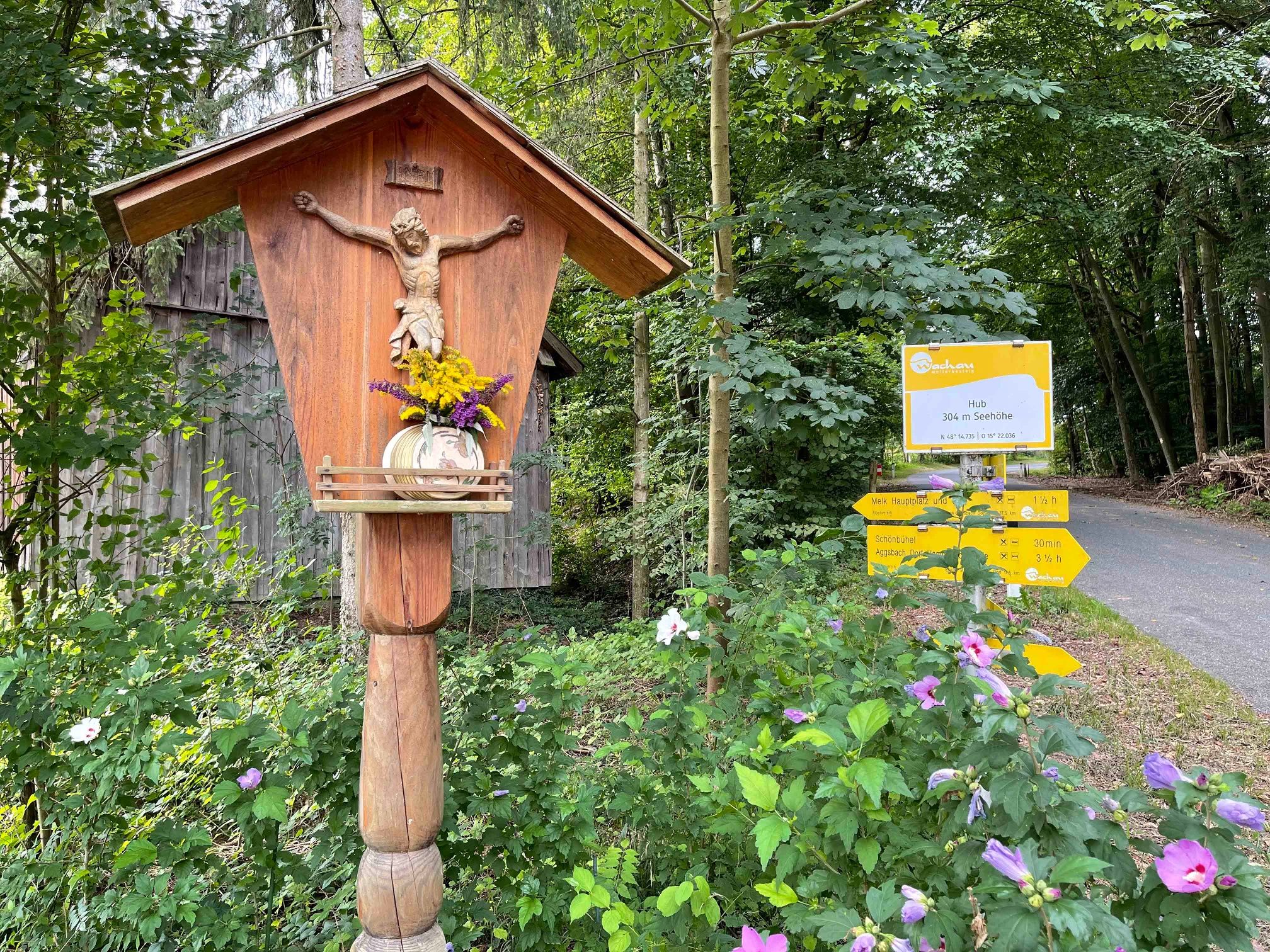 Durch den Ort Berging verläuft der Weg weiter durch bewaldetes Gebiet hinauf zur Hohenwarther Höhe, die mit weiten Rundblicken über den Dunkelsteinerwald beeindruckt. Über den Hohenwarthberg führt die Route schließlich hinab nach Aggsbach Dorf zur Donau, wo diese abwechslungsreiche Etappe des Welterbesteigs Wachau ihren Abschluss findet.