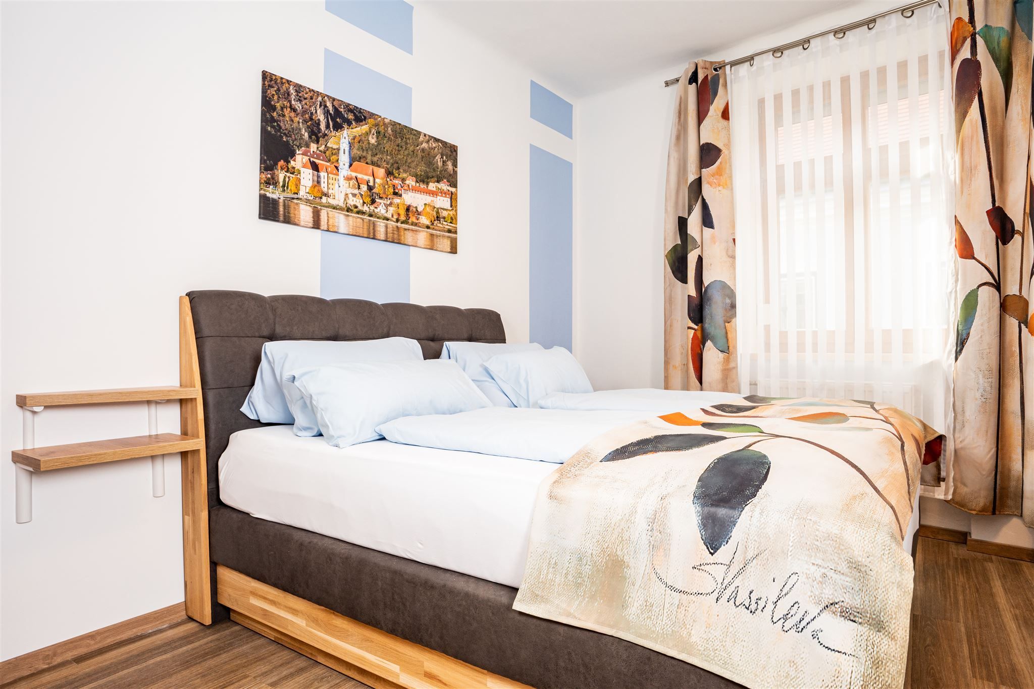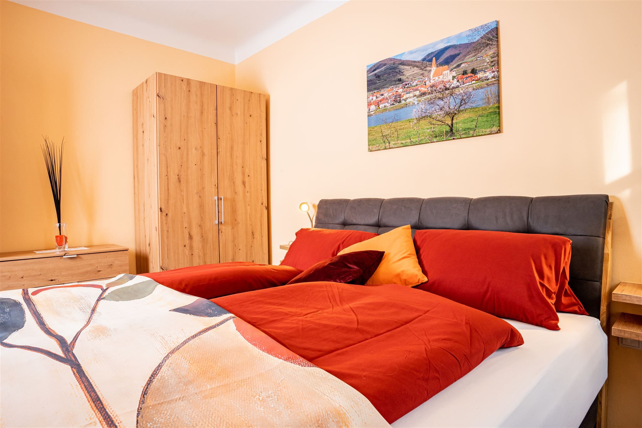Die Gästezimmer sind liebevoll nach Themen der Wachau gestaltet – zum Beispiel „Spitz“, „Weißenkirchen“, „Dürnstein“, „Marille“, „Wein“ oder „Kirsche“. Jedes Zimmer ist individuell eingerichtet und schafft eine behagliche Atmosphäre zum Entspannen nach einem Entdeckungstag in der Region.