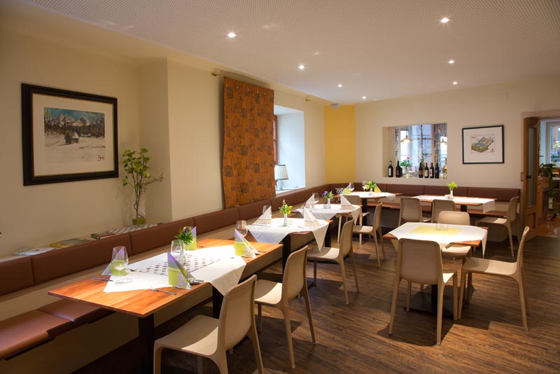 Die Gästezimmer, teilweise mit Balkon, bieten eine ruhige Lage. Ein herrlicher Gastgarten im Innenhof lädt zum Verweilen ein. In gemütlicher und ruhiger Atmosphäre können regionale Spezialitäten aus Küche und Keller genossen werden.